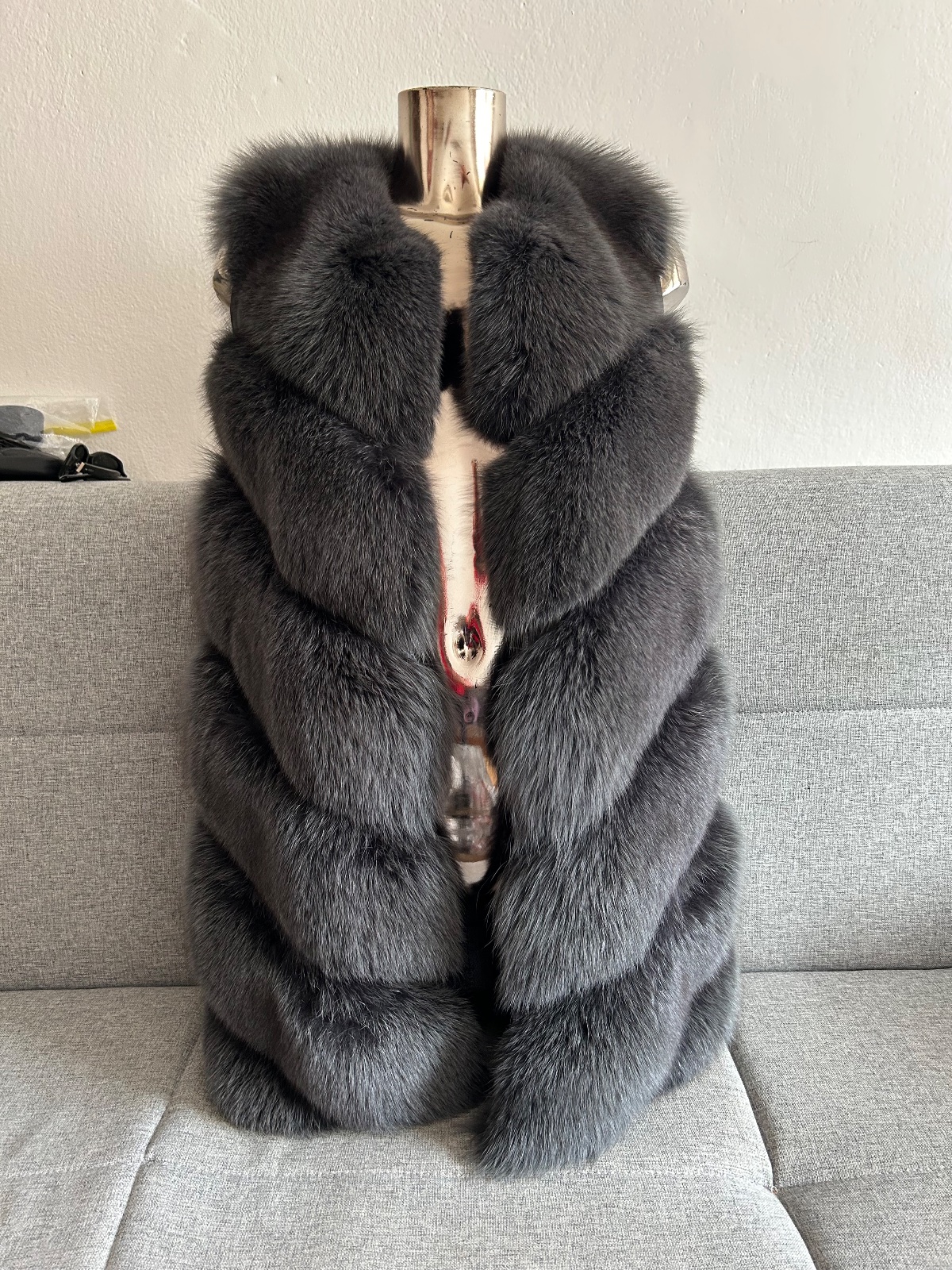 Luxusná vesta z pravej kožušiny z líšky v kombinácii s pravou kožou. Veľmi kvalitný kúsok, kvalitná hustá kožušina.