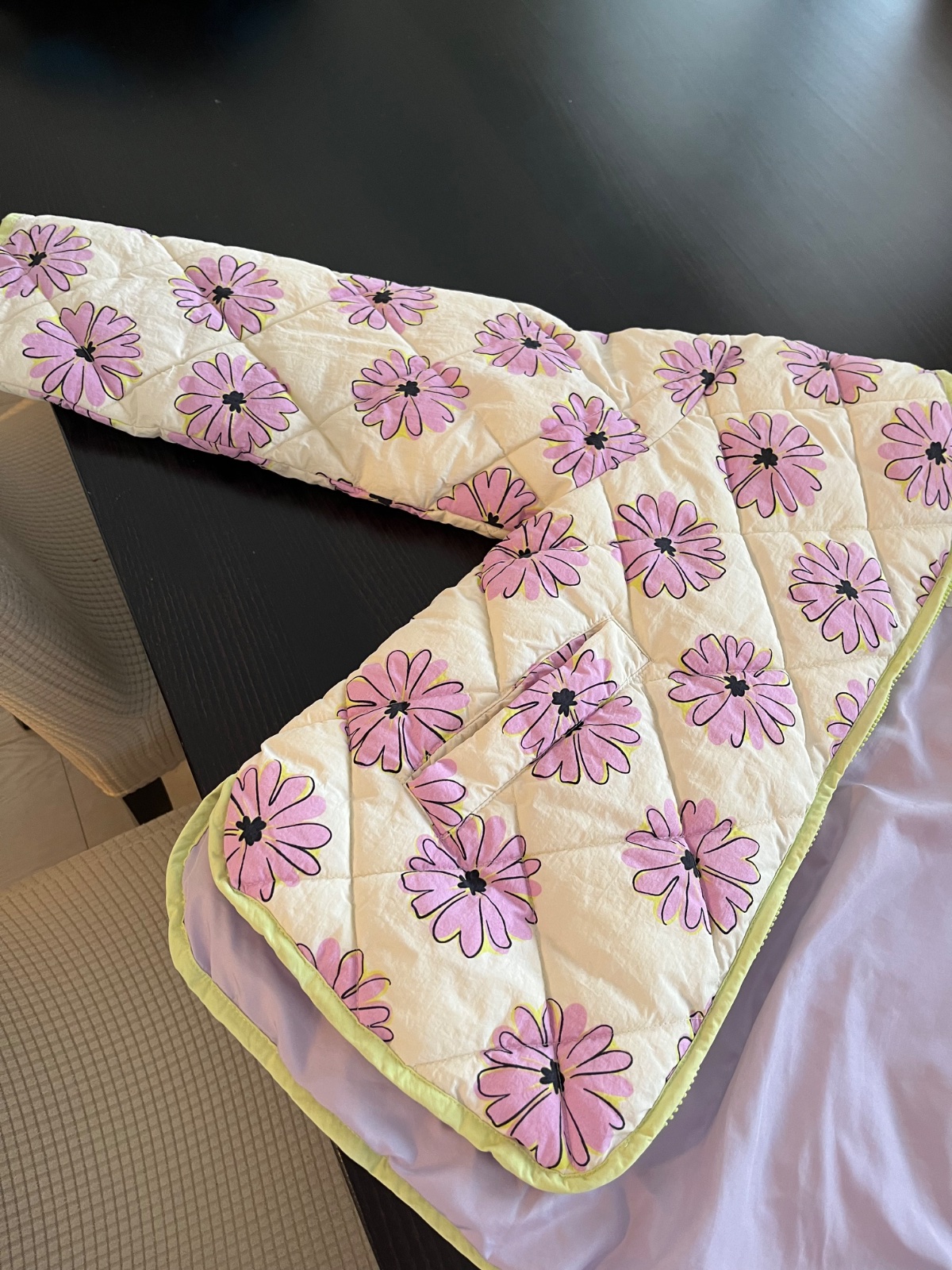 Veľmi pohodlný širší, kratší strih, ľahká, dcéra nosila na jar a jesen keď mala 9 a 10 rokov.