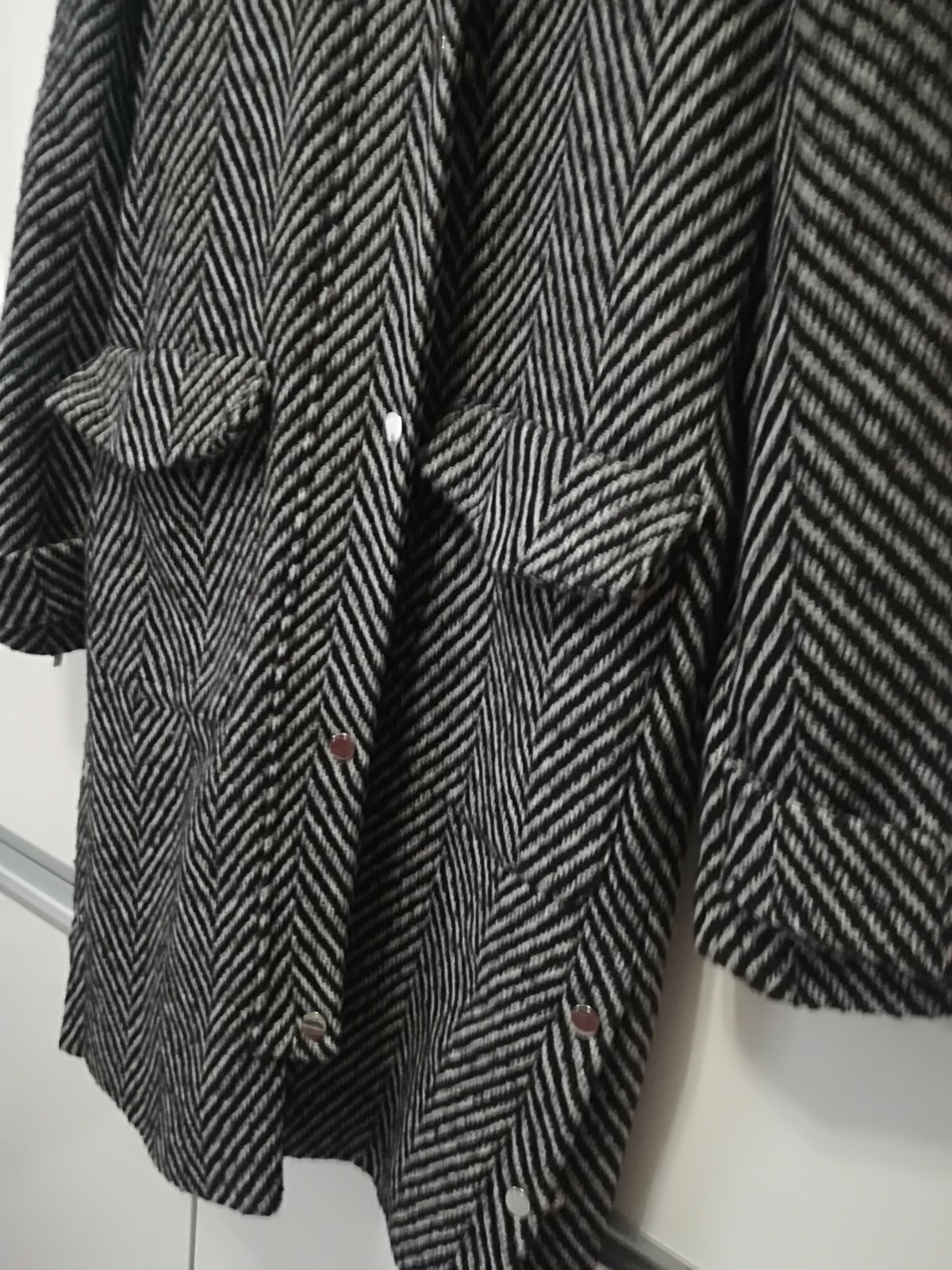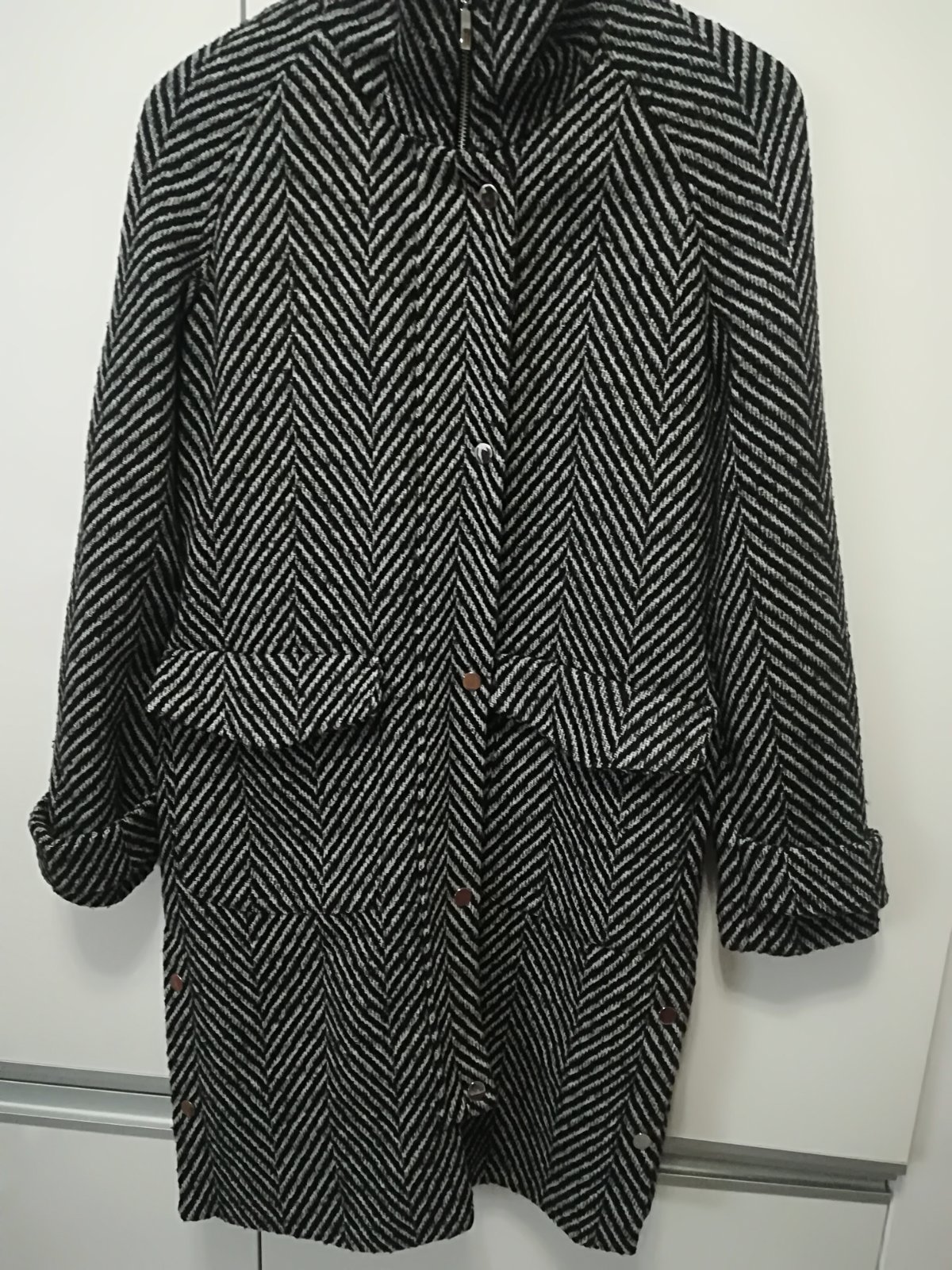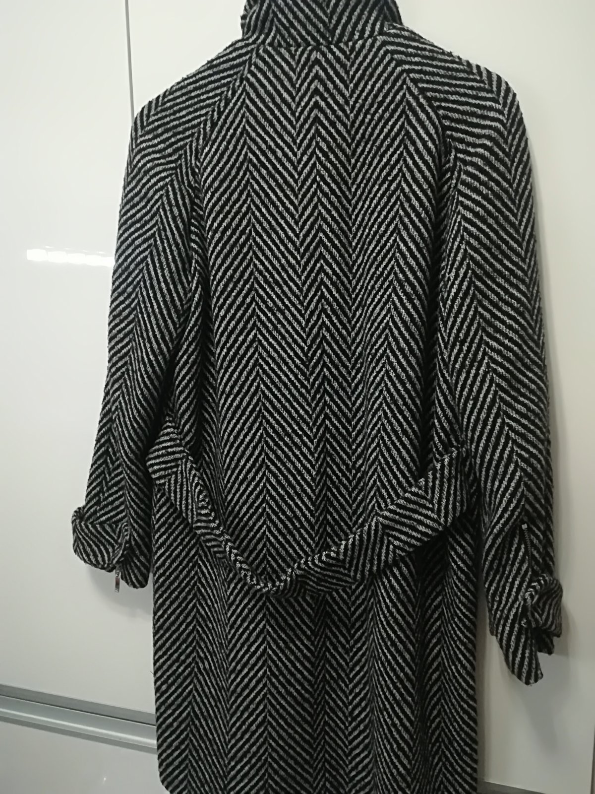 Krásny kabát v priliehavom predĺženom strihu, ja som z neho už "vyrástla". Veľkosť 38, je to skôr taký slim fit, cez prsia 47-48 cm, pás 43-44, krásny na postave. Pekný nosený stav, jemné žmolky, a...