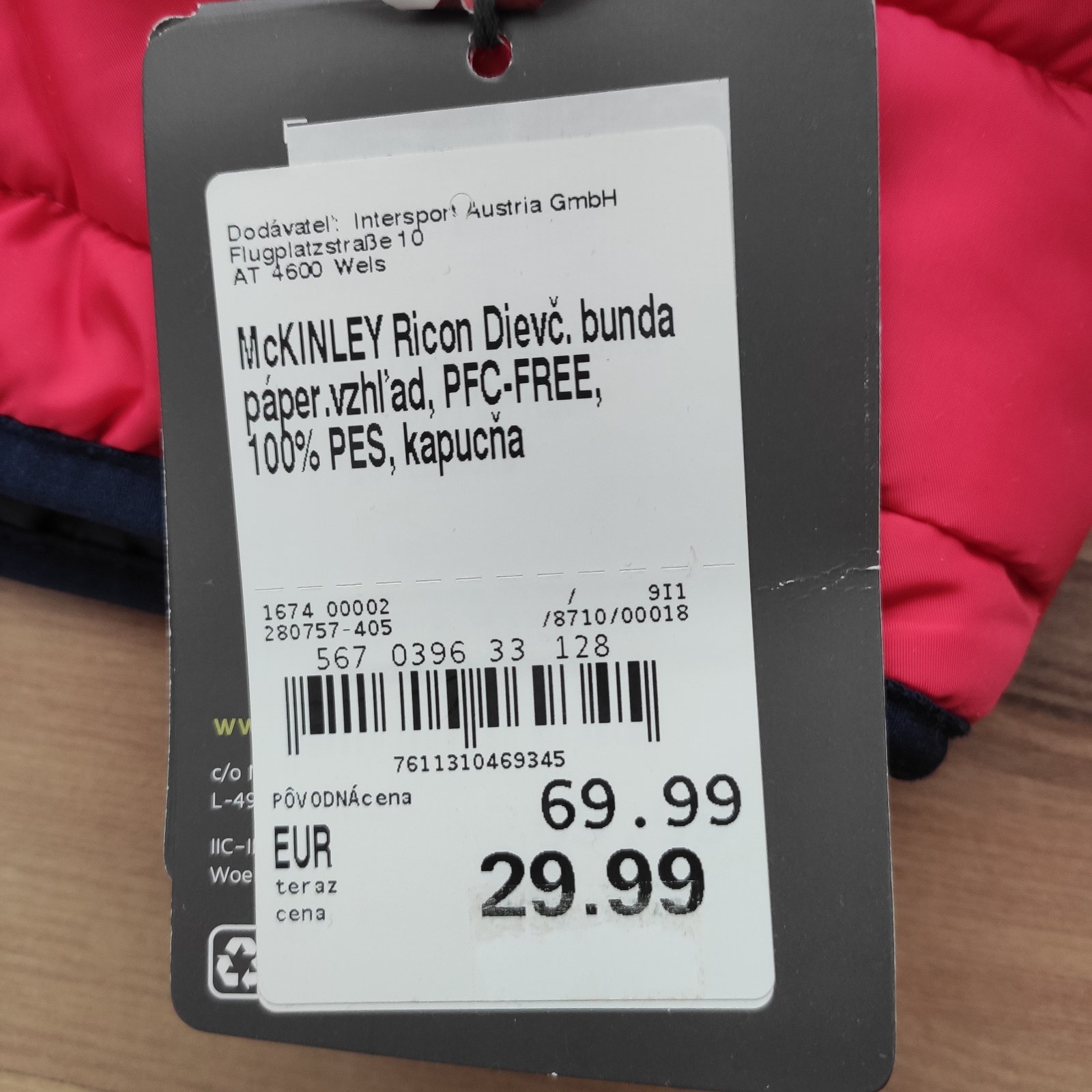 Predam ideálnu bundu na turistiku, nosenu príležitostne 1 dieťaťom. Poškodenia nemá, kupovaná bola nová. Farba je svetlo červená, nie sýto červená, trochu to skresľuje.