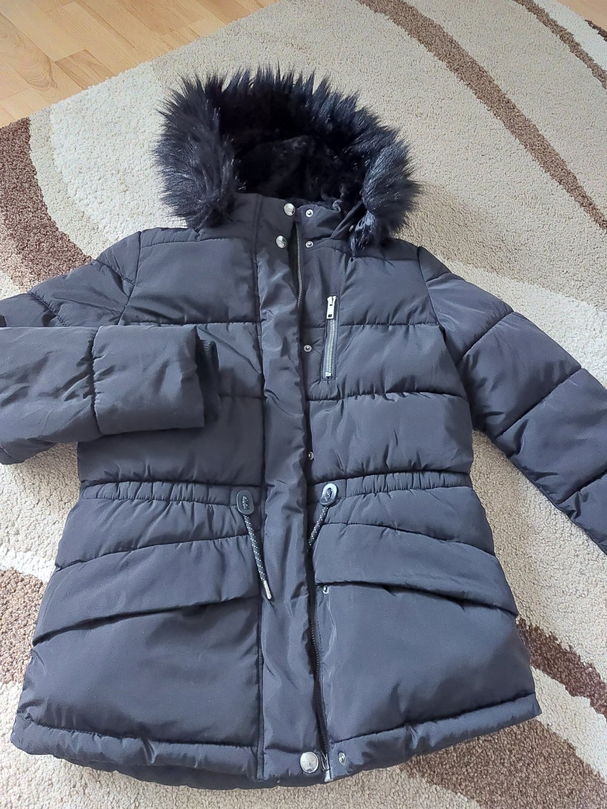 Zimná bunda bez poškodenia, sýto čierna farba, sýtejšia ako na foto, kožušina na kapucni sa dá odopnúť.