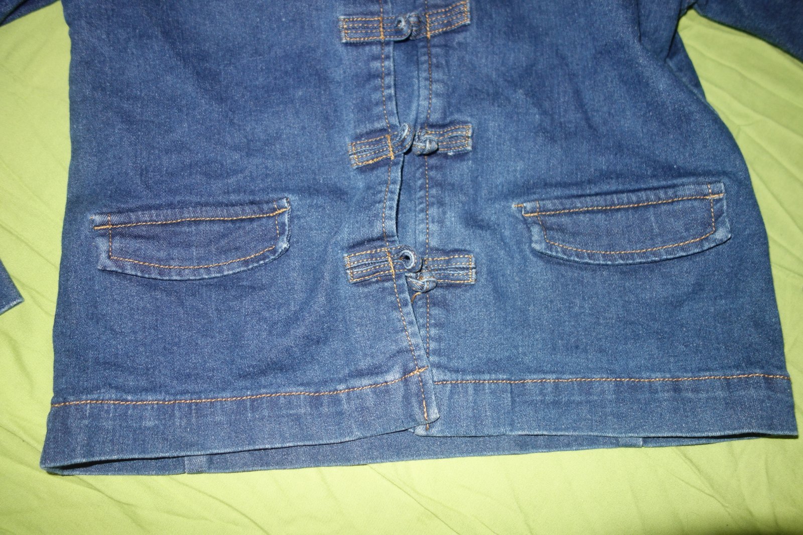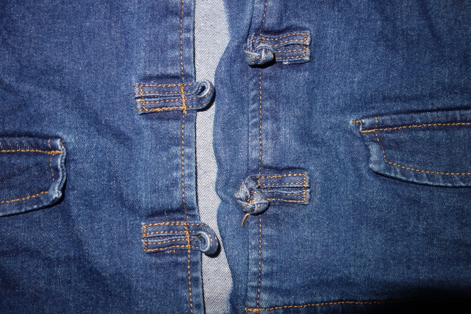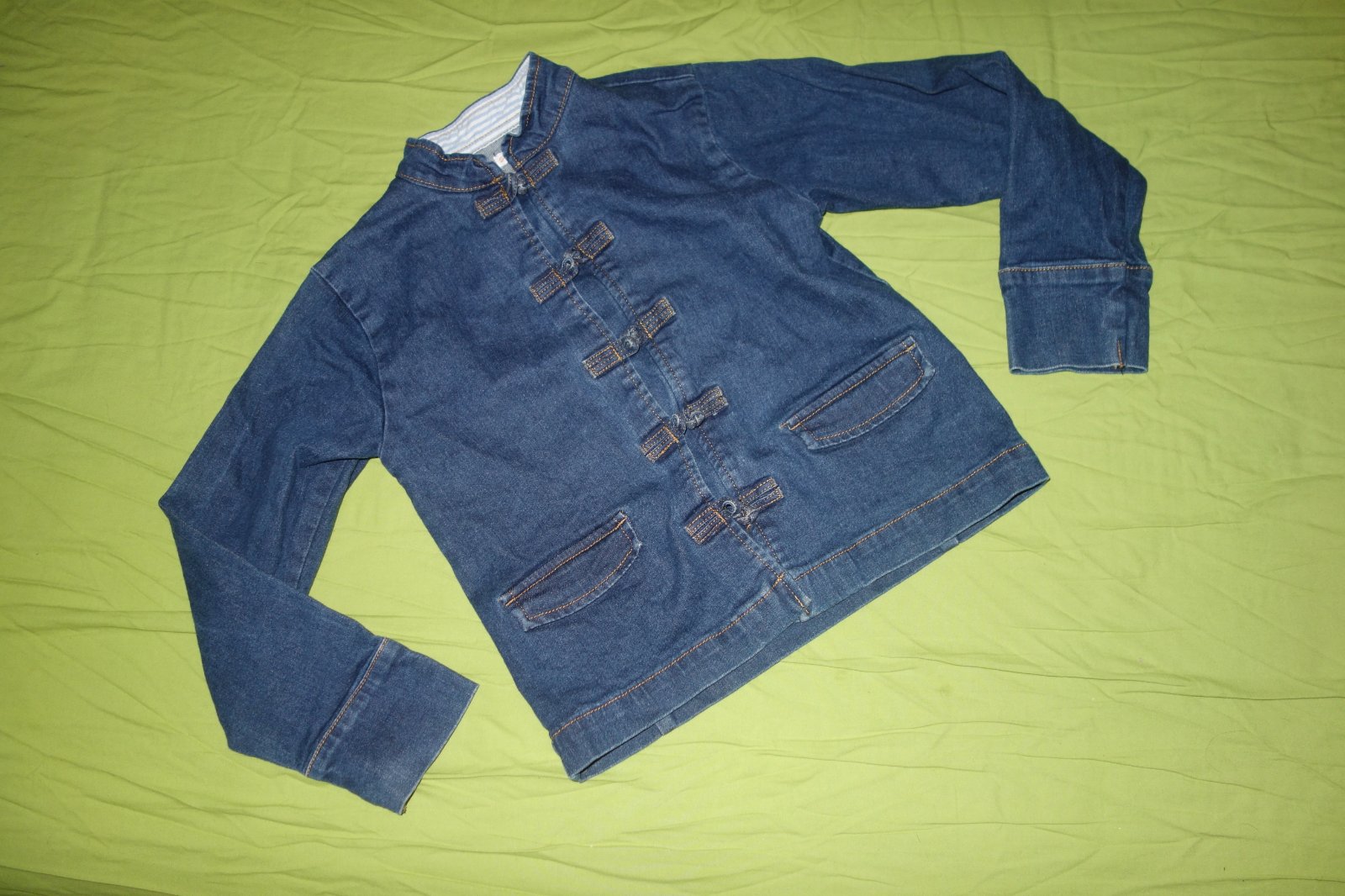 Pekny riflovy kabatik vo velmi dobrom stave. Tie uzliky sa trochu tazsie zapinaju.