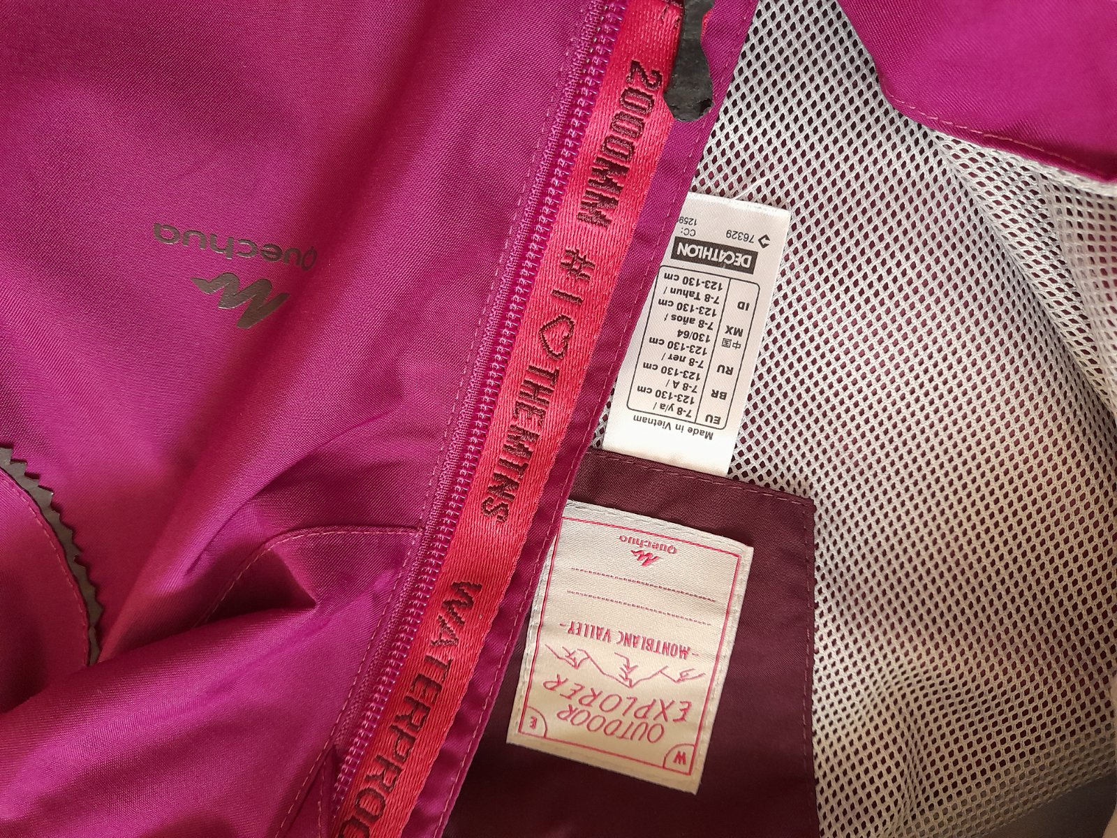 Perfektná obojstranná bunda z Decathlonu. Veľkosť uvedena na 6 rokov, čiže cca 122, ale dcérka ju nosila ešte ako 10 ročná, keď nosila už 134ku Veľmi pekný nosený stav