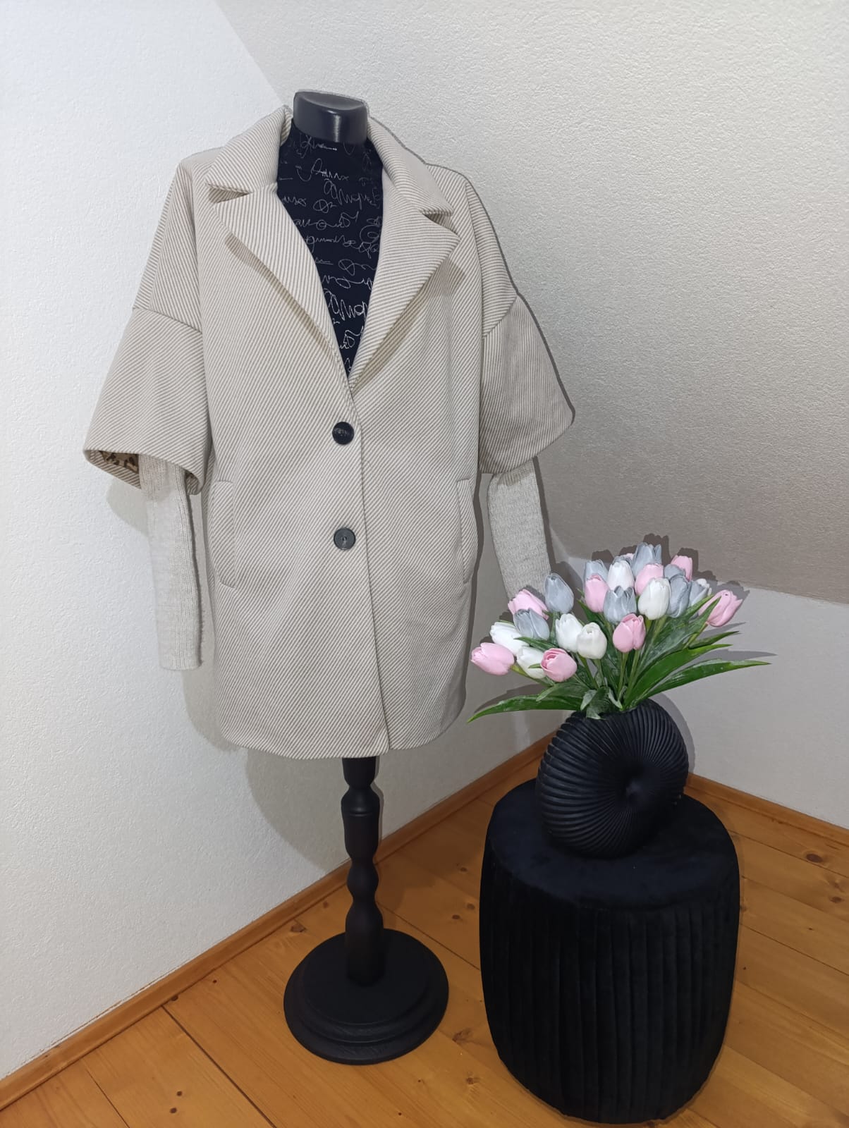 Predám noseny kabátik Alpaku, oversize strih, zapínanie na jeden cvok , vzadu ušpinena, zohľadnené v cene, inak top stav, sedi pekne do 44 ky .
