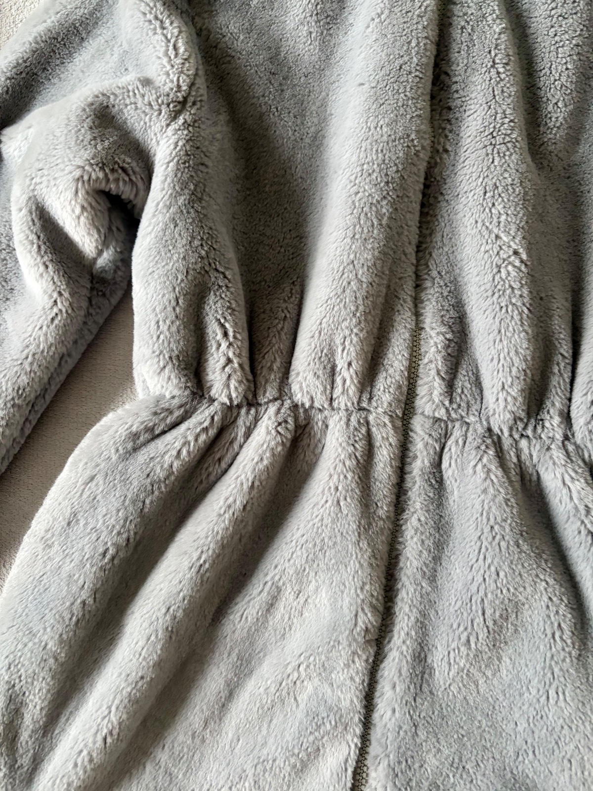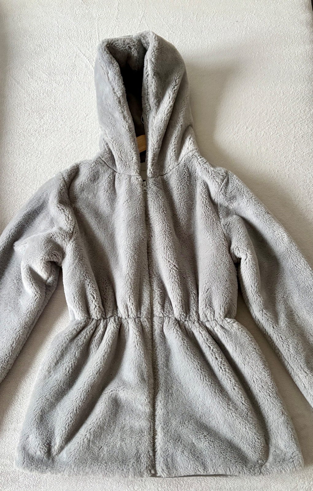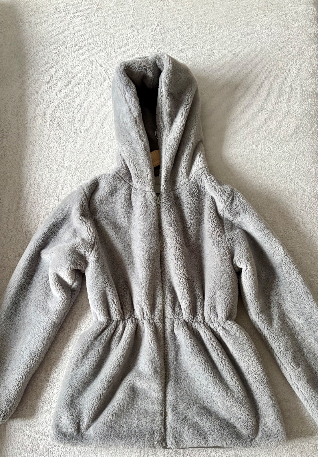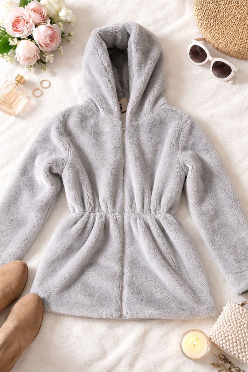 Kožuch je ľahký, hrejivý a veľmi pohodlný, ideálny na každodenné nosenie aj voľnočasové prechádzky. Nadčasová svetlosivá farba sa ľahko kombinuje s akýmkoľvek outfitom.