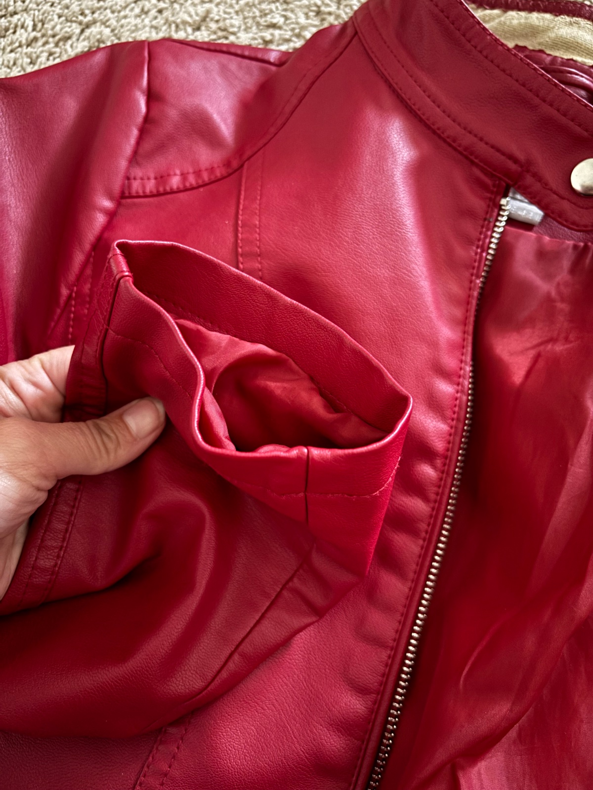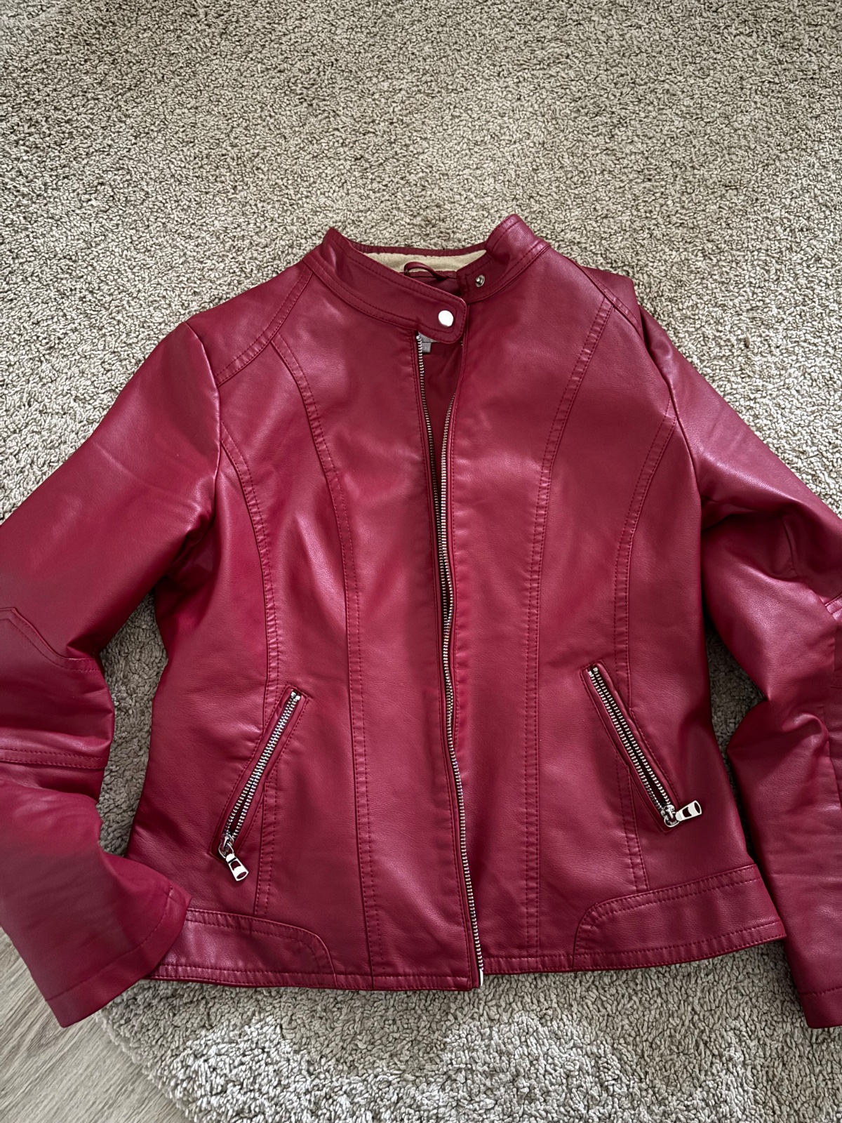 Krásna bunda, občas oblečená, ale ako vidíte s jednou vadou, začal sa supat limec z vnútornej strany, dá sa nasit latka napr.ja už nevynosim, ak by si niekto vedel opraviť za poštovné a balne pošlem.