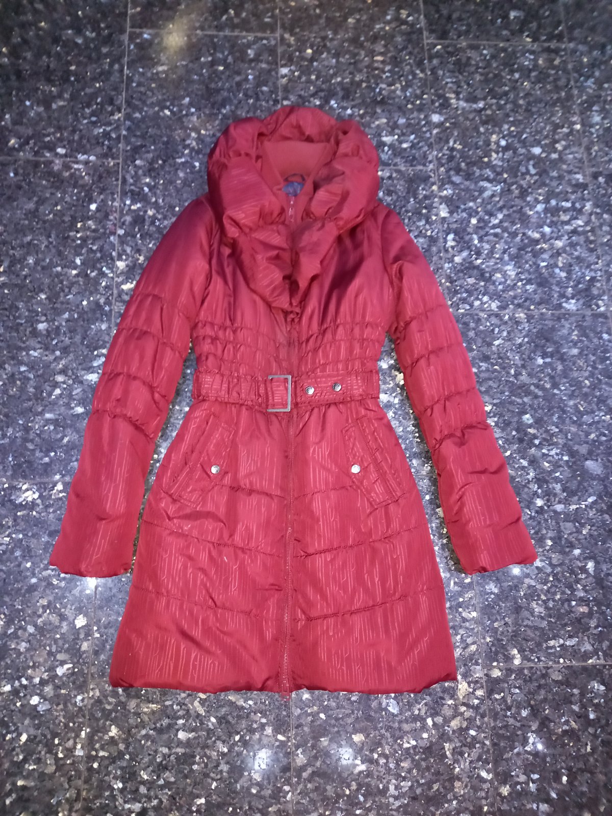 Predľžená bunda na zips s opaskom vo veľmi dobrom nosenom stave, veľ. M, Rozmery: dľžka 86cm, rukáv od krku 79cm, pás 2x32cm.