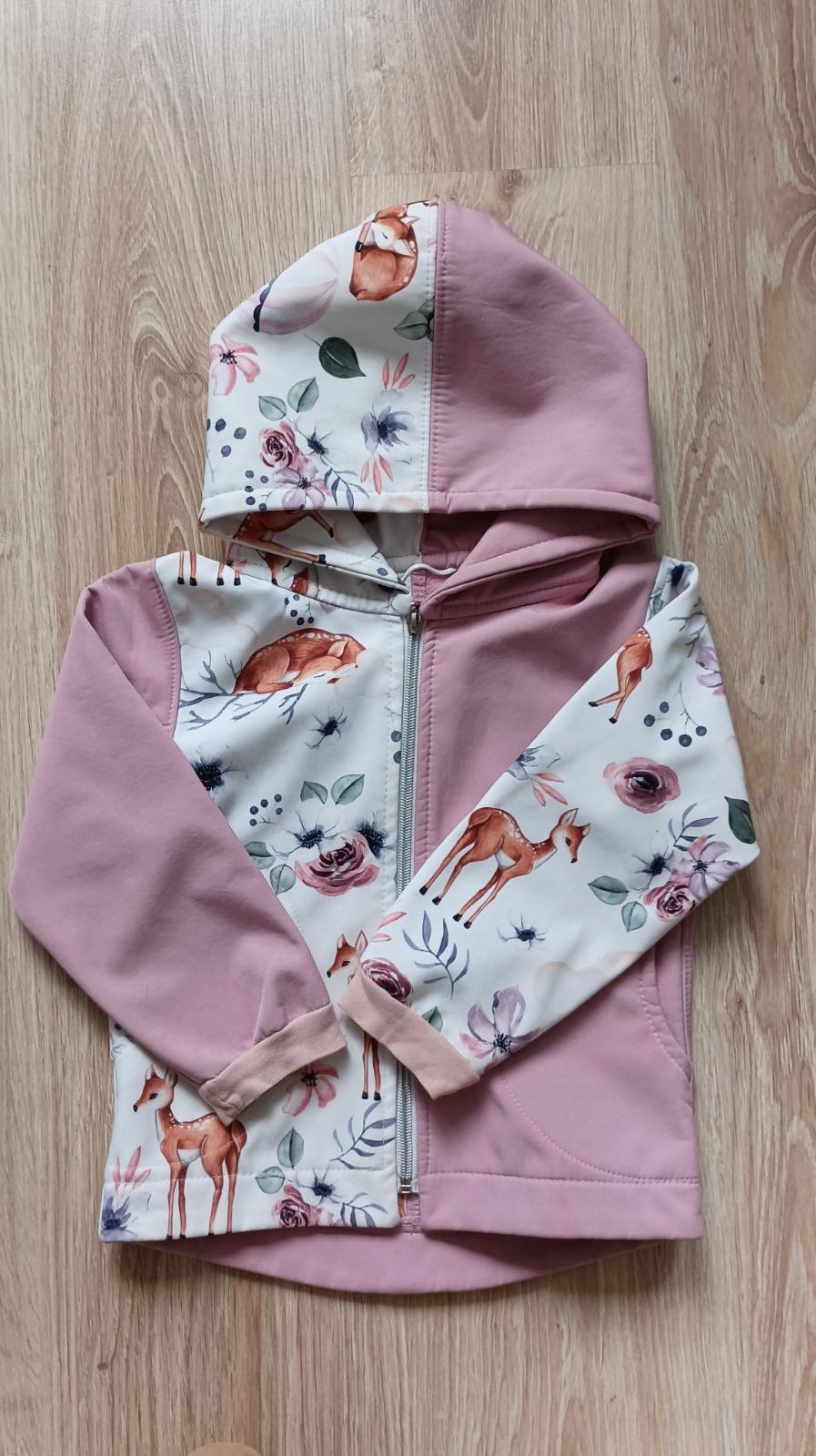 Ručne šitá softshellová bundička pre dievčatko, veľkosť 98/104. Drobné známky nosenia. Treba si vymeniť jazdec na zipse. Cena 8€.