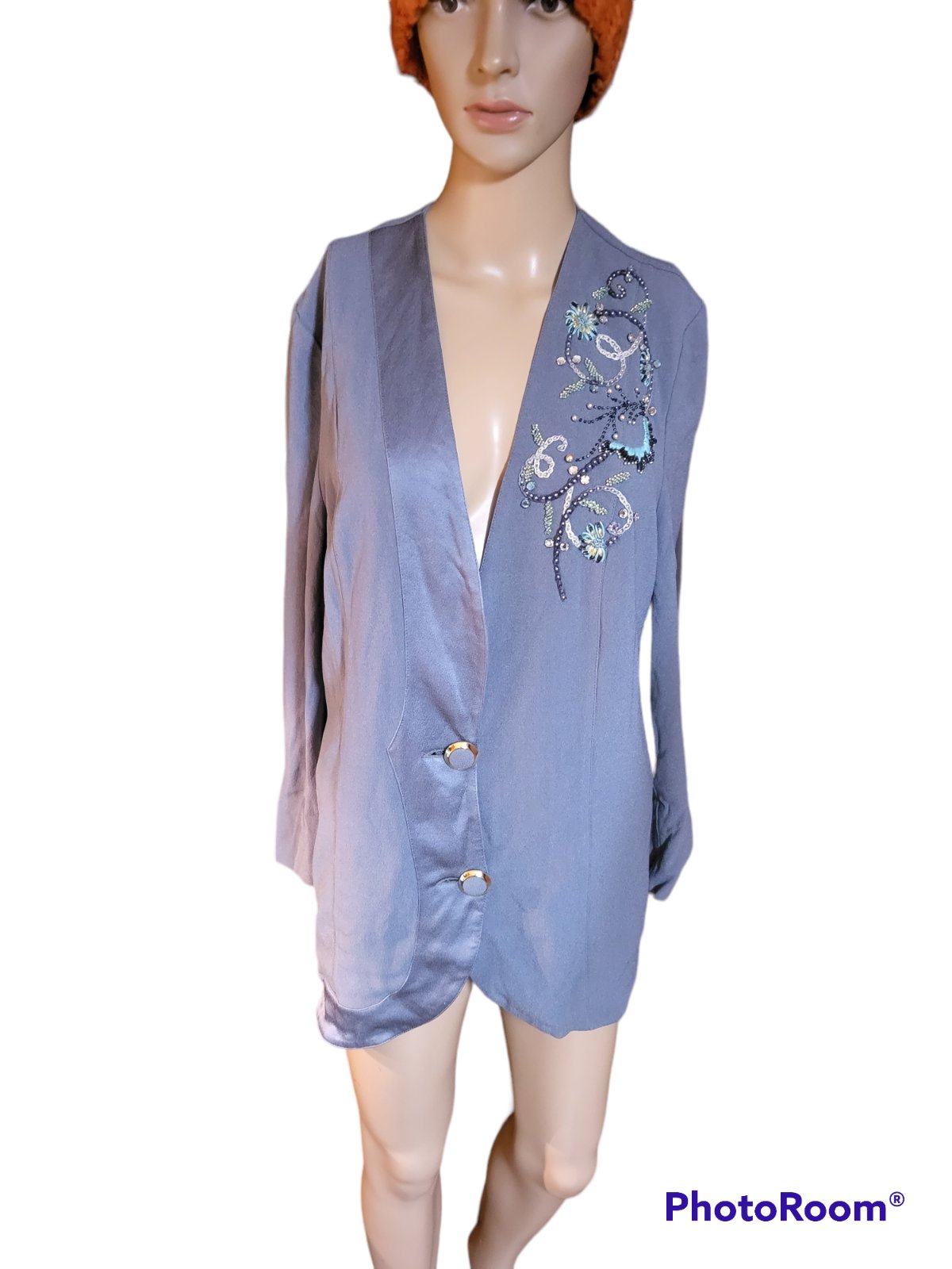 Dámske elastické sako. Dĺžka je 70cm,obvod hrudníka je 100cm a obvod pása je 98cm. Dĺžka rukáva je od krku 70cm. kód 1567