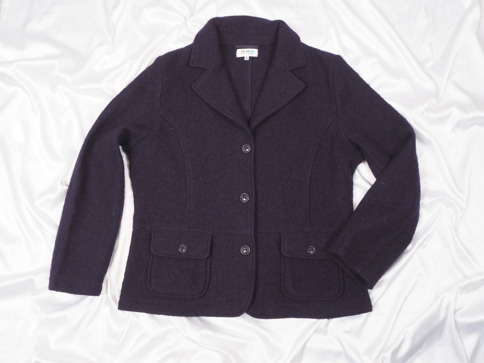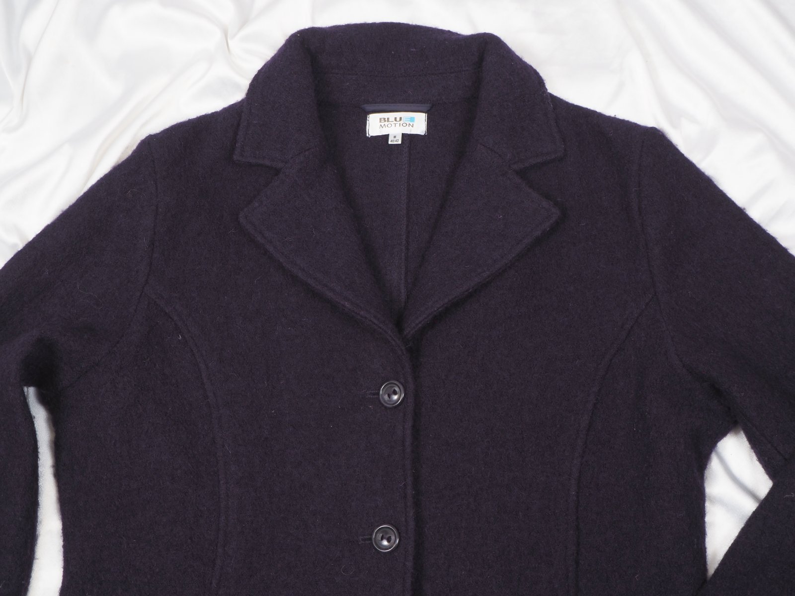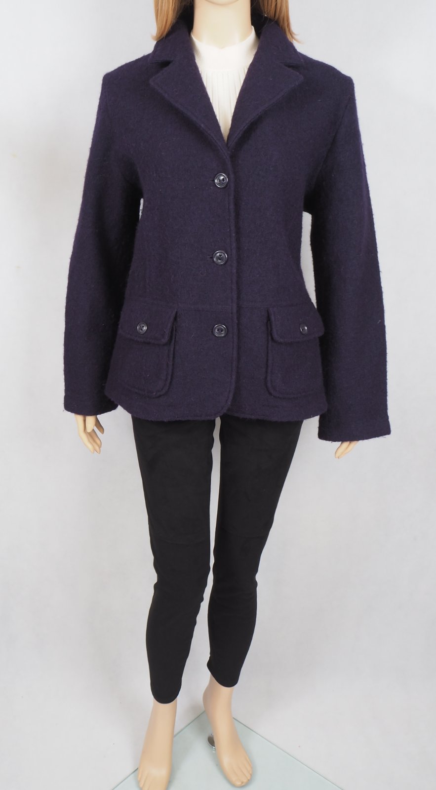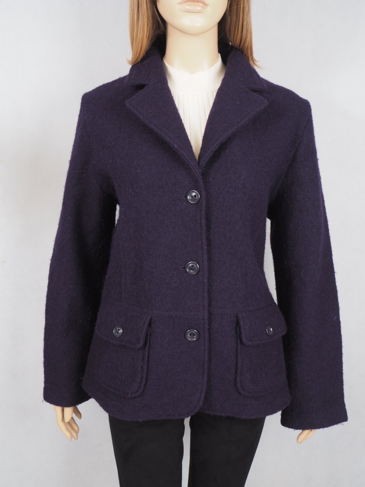 Kvalitný tmavofialový vlnený kabát, so zapínaním na gombíky, materiál 100% vlna, super stav...veľ. píš 40/42, ale sedí na veľ. 44.