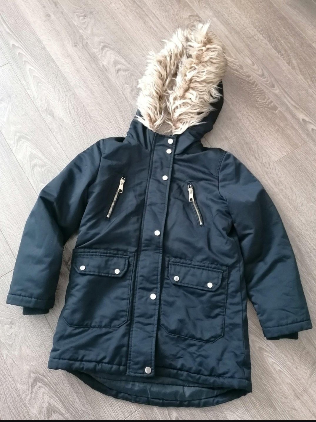 Zateplená parka na zimu, v pekno zachovalom stave. Velkostbe sedí, nositelna aj dlhsie, zadna cast predlzená, vnutro zateplené kozusinou