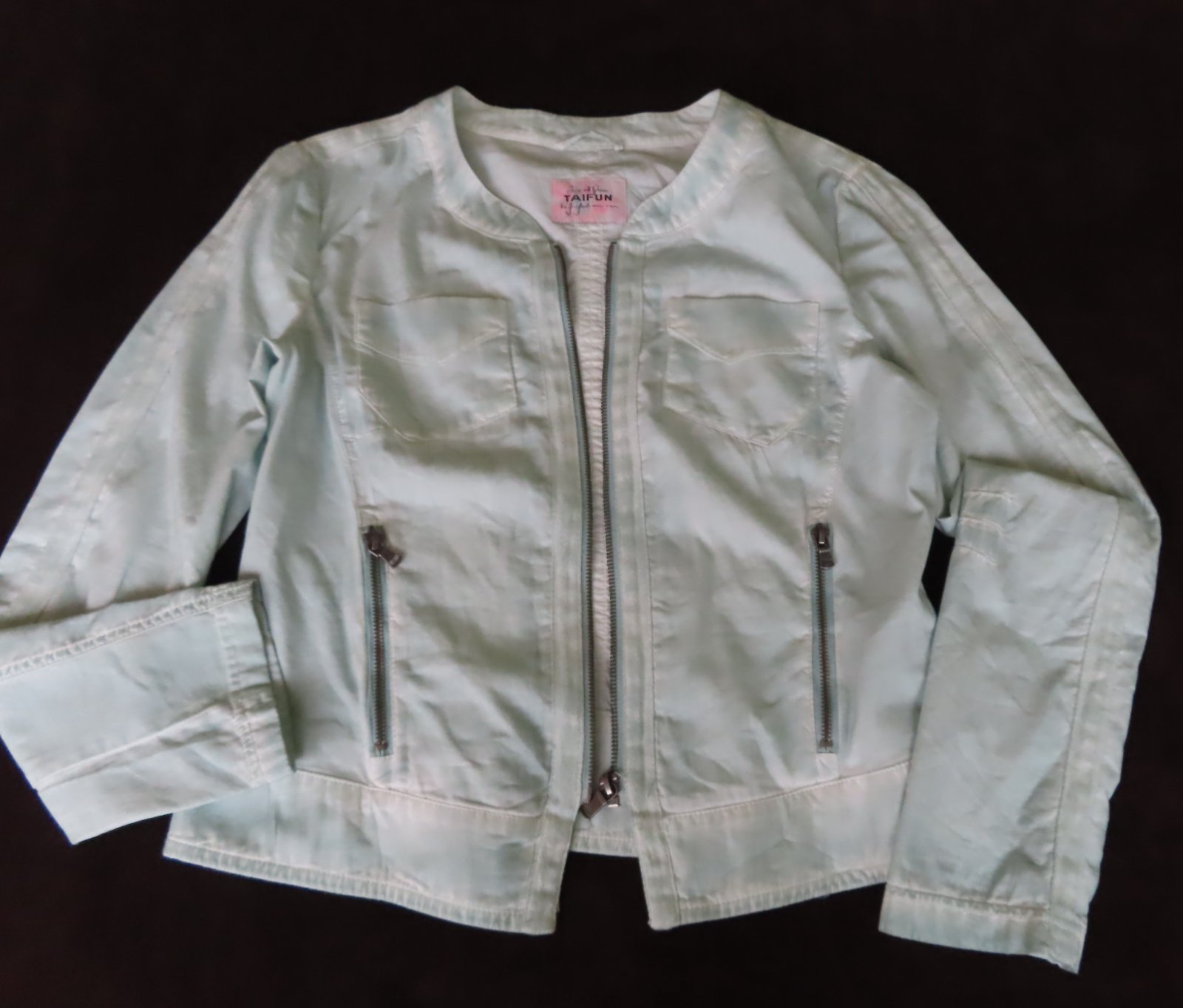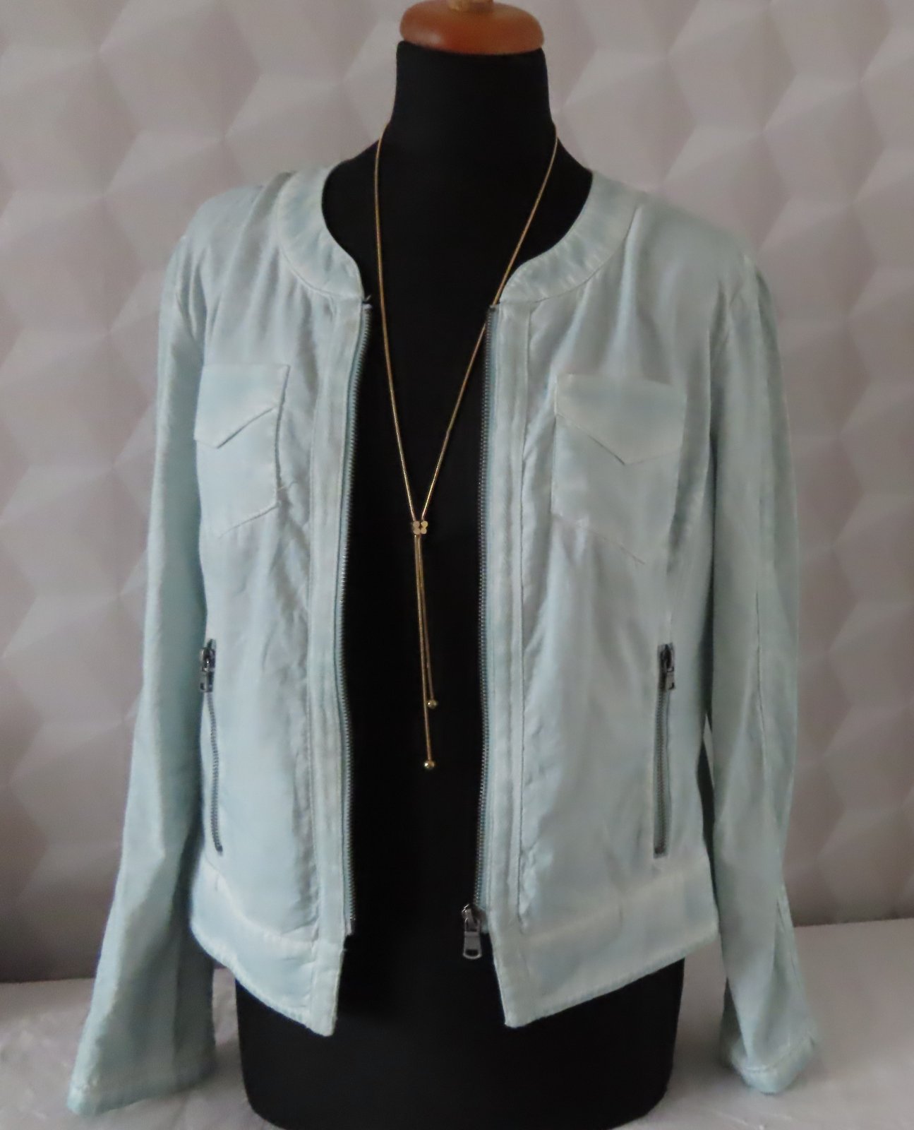 Bundička je modro-sivej farby - vintage efect, bez podšívky. Pekne tvarovaná na postavu.