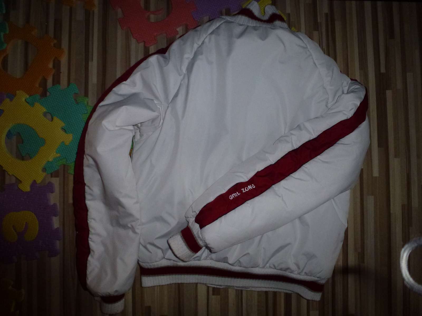 Bunda teplá biela s červeným vzorom, bez chýb,stav 100%. Teplá, Predajna cena vysoka Kukni môj obchodík, možno sa tie niečo zíde. Veľkosť M