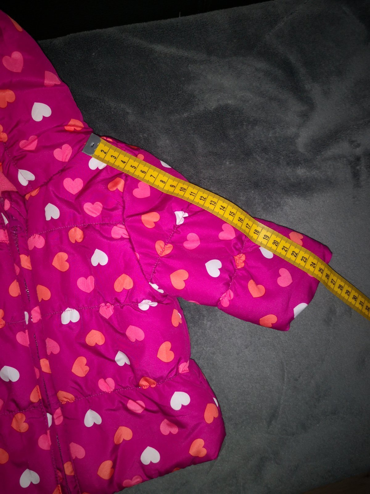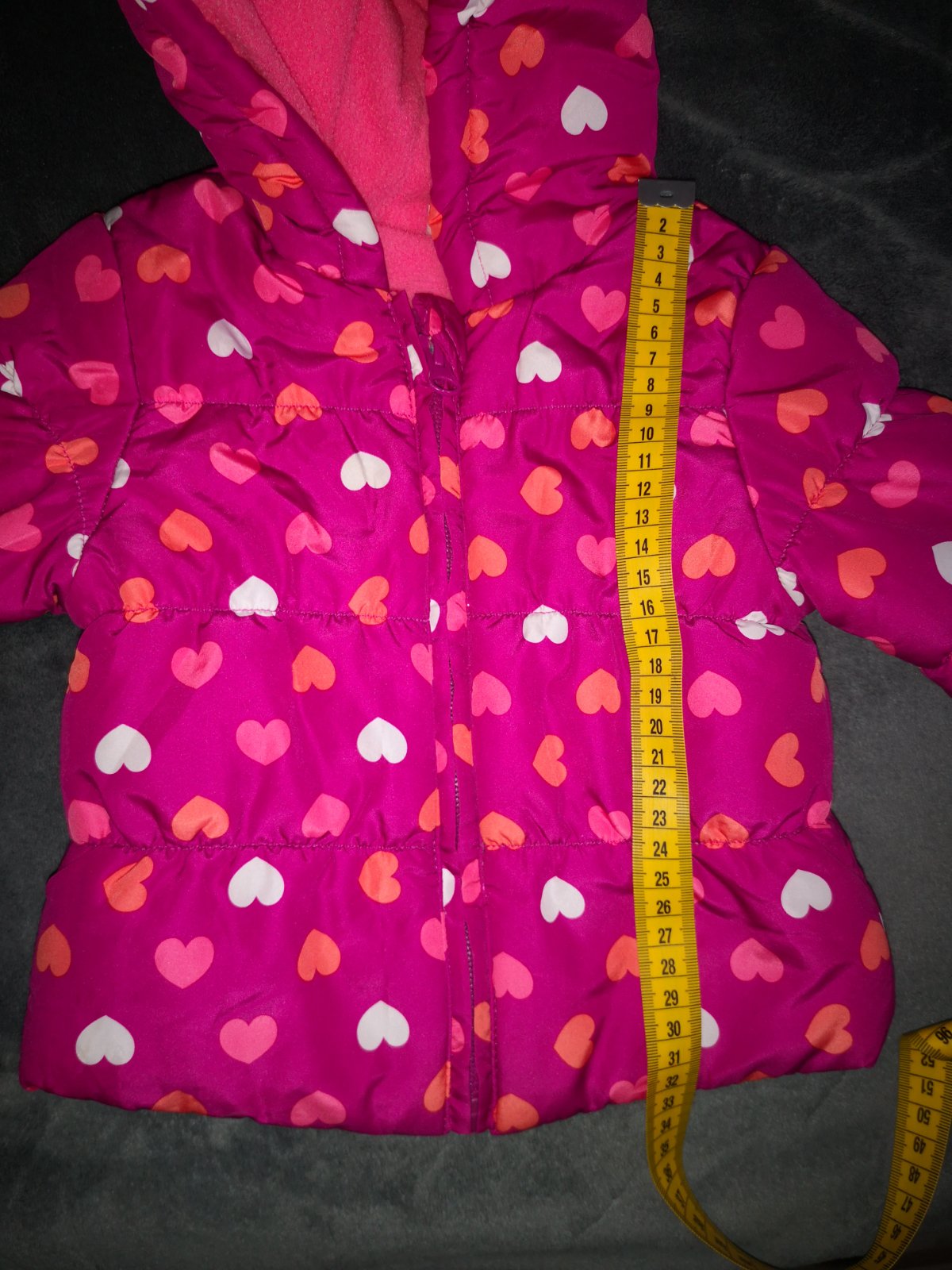 Cyklamenova zimná bundička. Pre mňa top, teplá, dá sa zapínať okolo pasu, cim neprefuka, reflexne prvky, stahovanie okolo zápästia, kapucňa, zapínanie až ku krku. Maly fliačik, viď foto. Možno sa d...