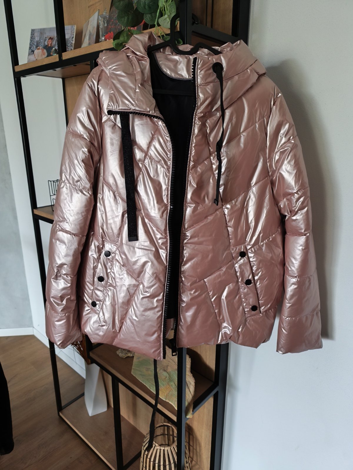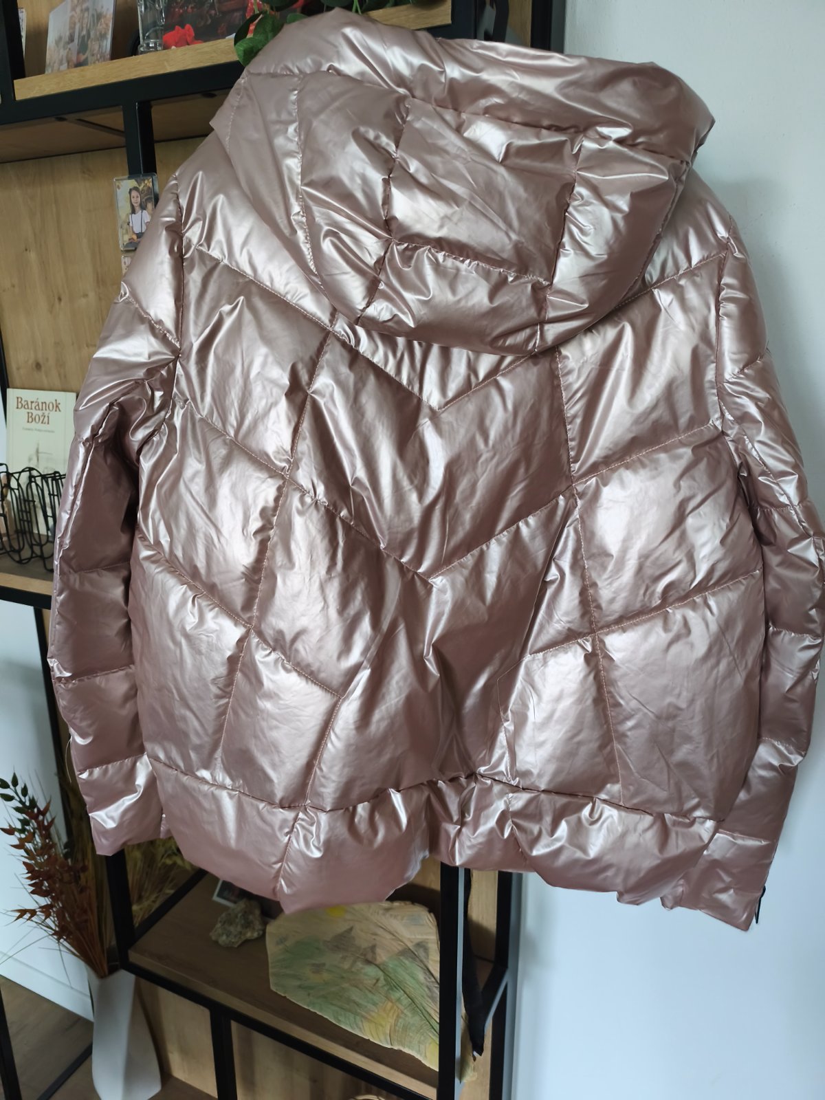 Predam novú bundu metalická ružová.obod hrudník 60 cm.dlzka bundy 67 cm.dlzka rukáv od kapucne 68 cm