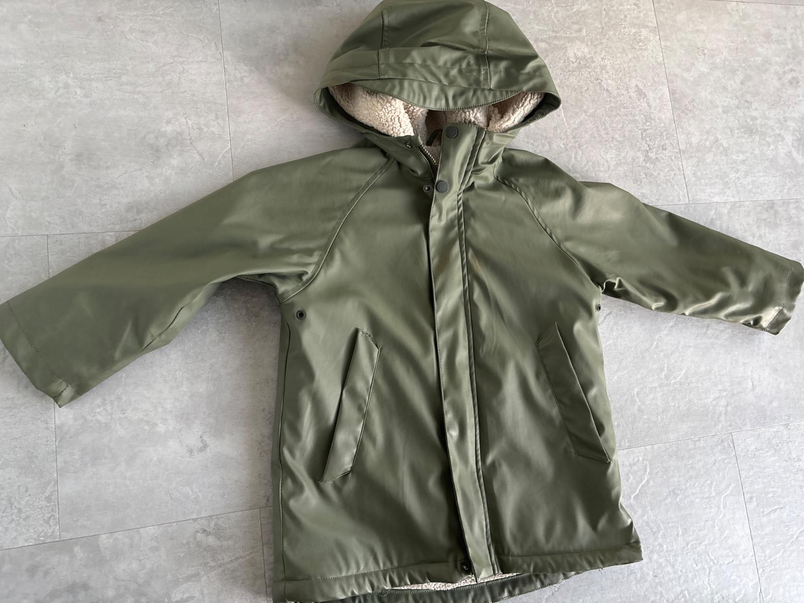 Pogumovana bundicka, zvnutra kozusinka. Vhodna na prechodne obdobie. Jemne povolila nitka na vrecku, vid foto. Dlzka 50cm, sirka 38cm a rukav 44cm