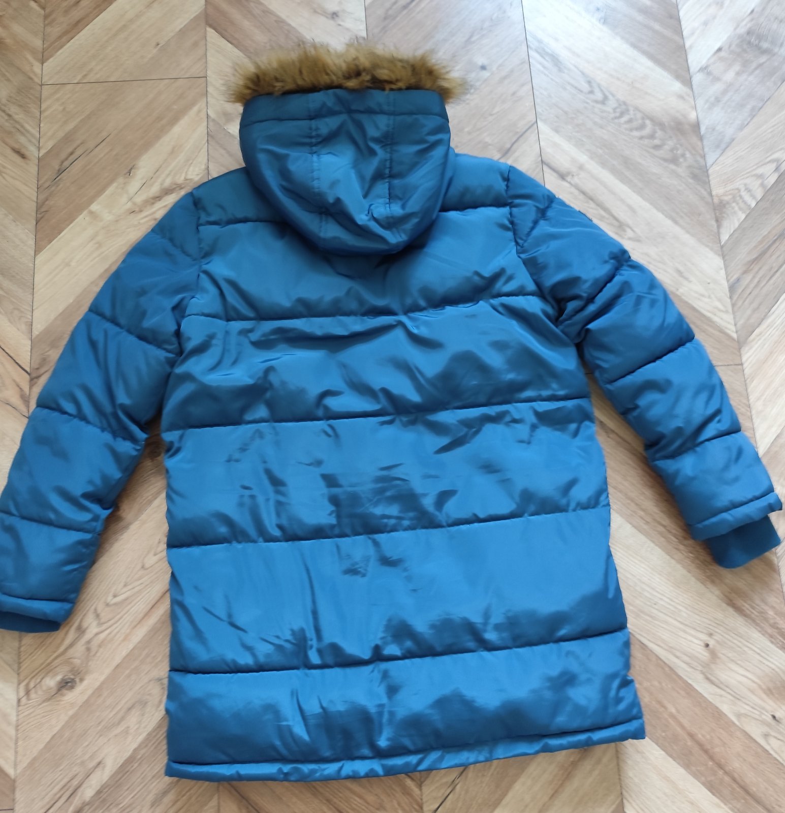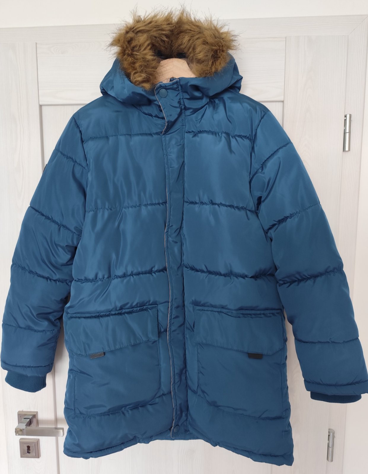Výborný stav, bez poškodenia, krásna petrolejová farba . Chlapčenská zimná bunda, teplá, predĺžená, patenty na rukách, vnútorné vrecko, odnímateľná kožušina z kapucne, vnútro vyteplené flísom.