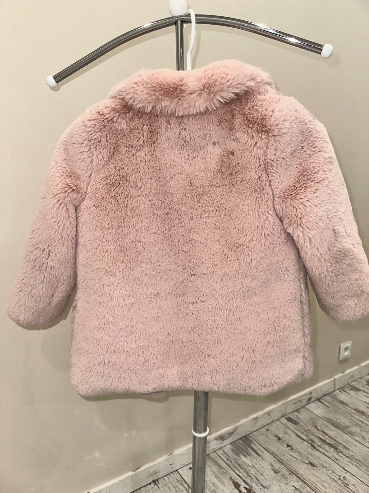 Pekný dievčenský kožúšok.Rozmery:dĺžka -39 cm, šírka-36 cm,dĺžka rukáva od krku-46 cm