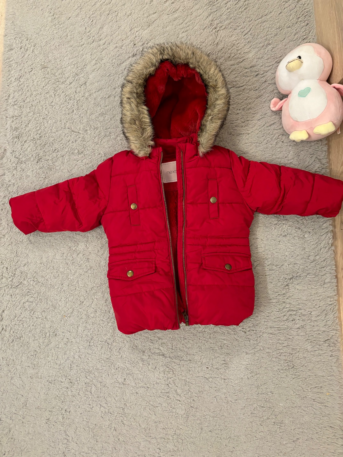 Nosená bundička v super bezchybnom stave. Celé vnútro plus kapucňa je zateplená. Bunda je tým padom teplučka. Zn. Next. Veľkost 12-18m.(86). Cena 10€+ poštovné