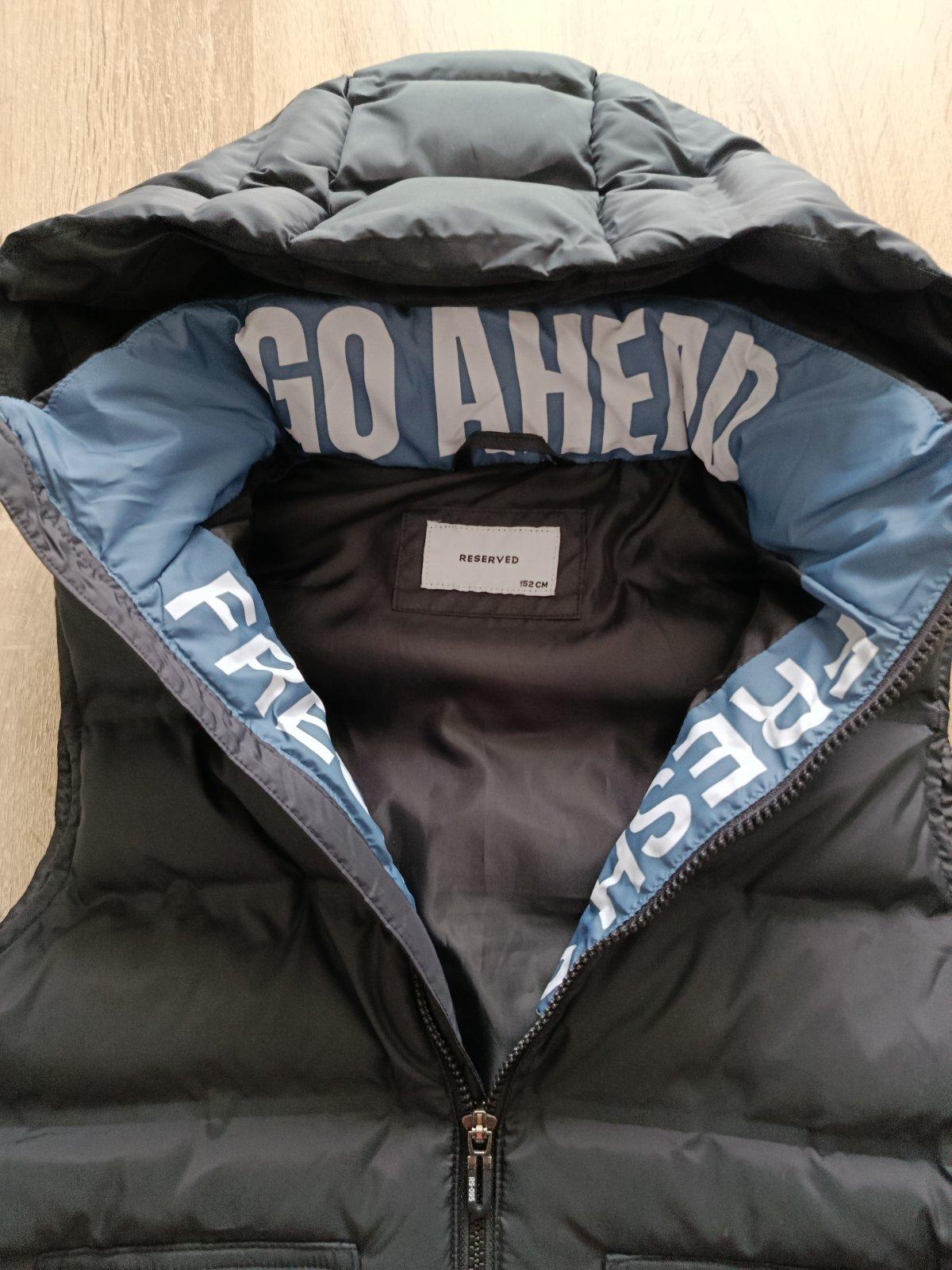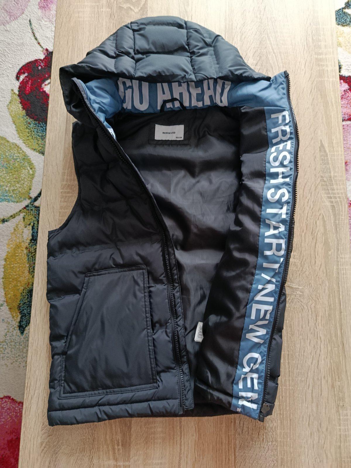 Nepremokava vesta Reserved Látková vesta jednoduchého strihu. Nízky stojačik Zapínanie na zips Dve vrecká na prednom diele Nepremokavá látka Hladká podšívka Veľkosť 134/140, 146/152, 158/164 zelen...