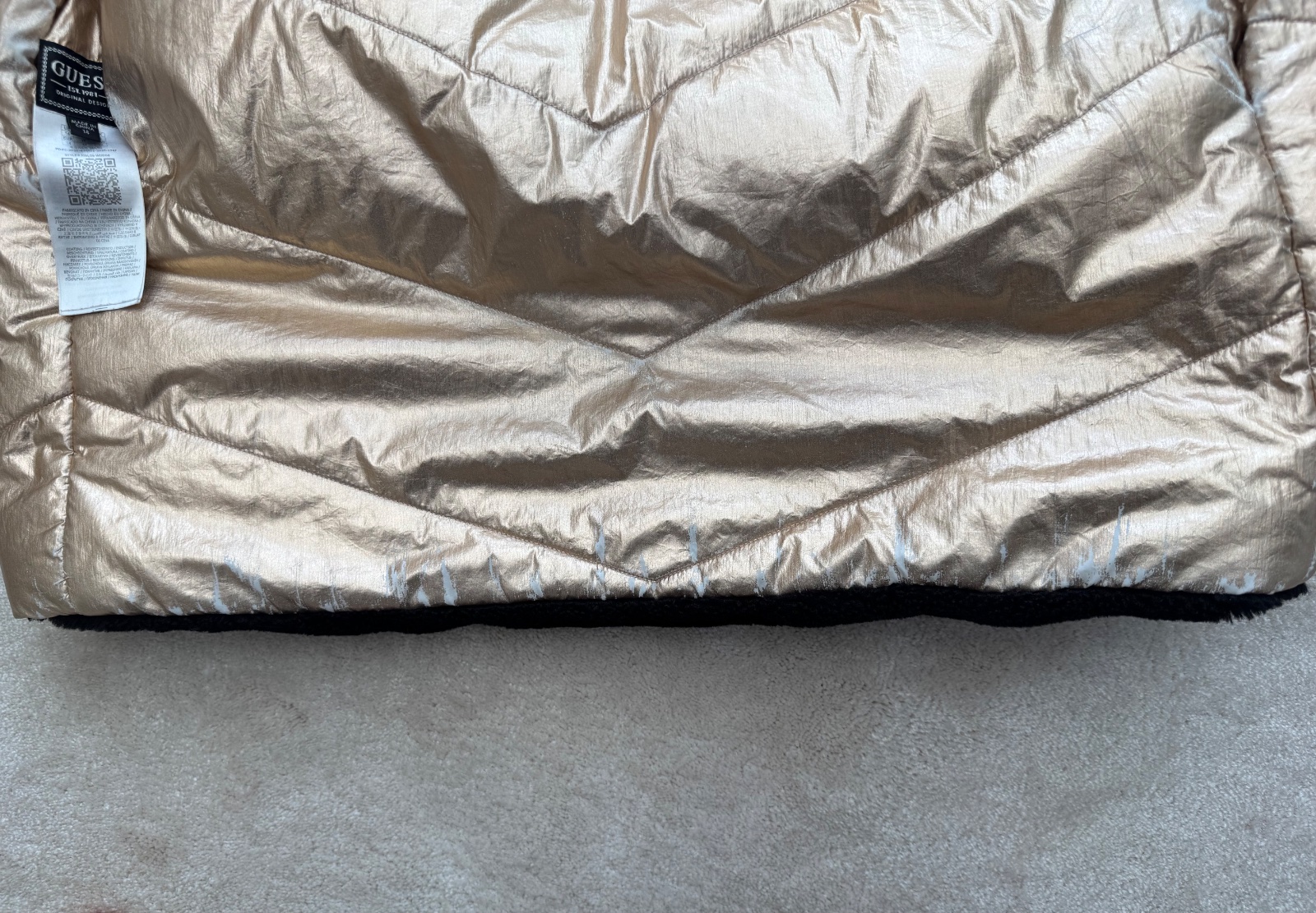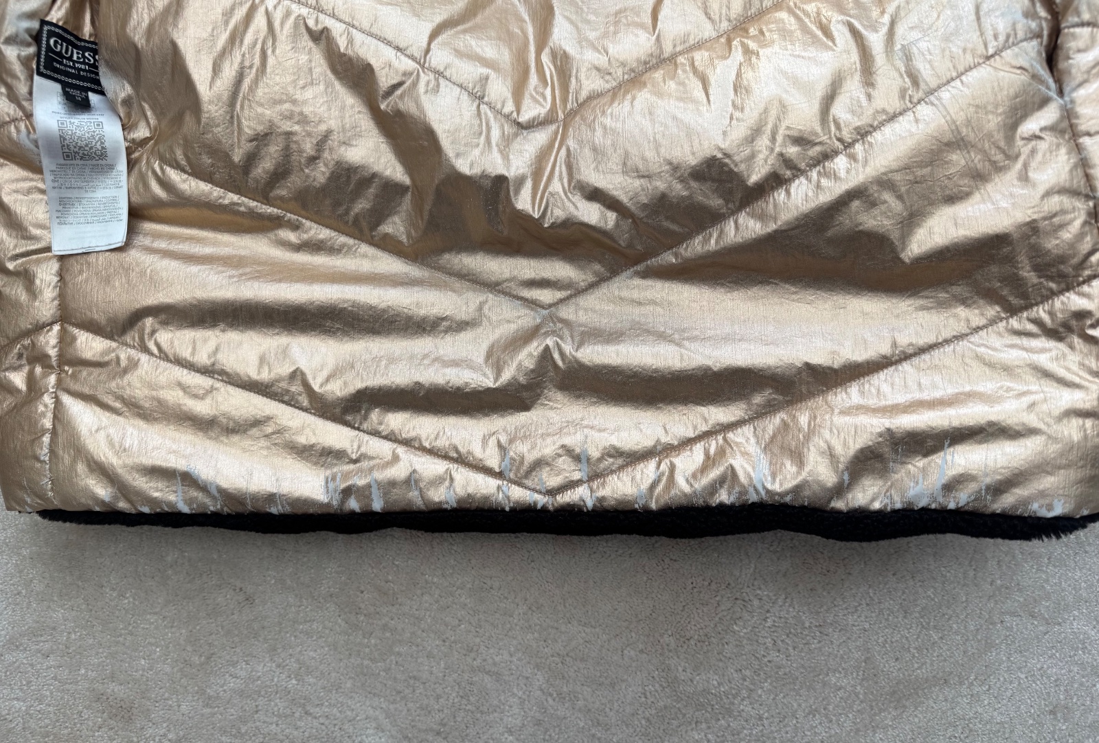 Teddy strana je vo vybornom ako novom stave, zlata strana - znamky nosenia su viditelne sposobene materialom pri prani…
