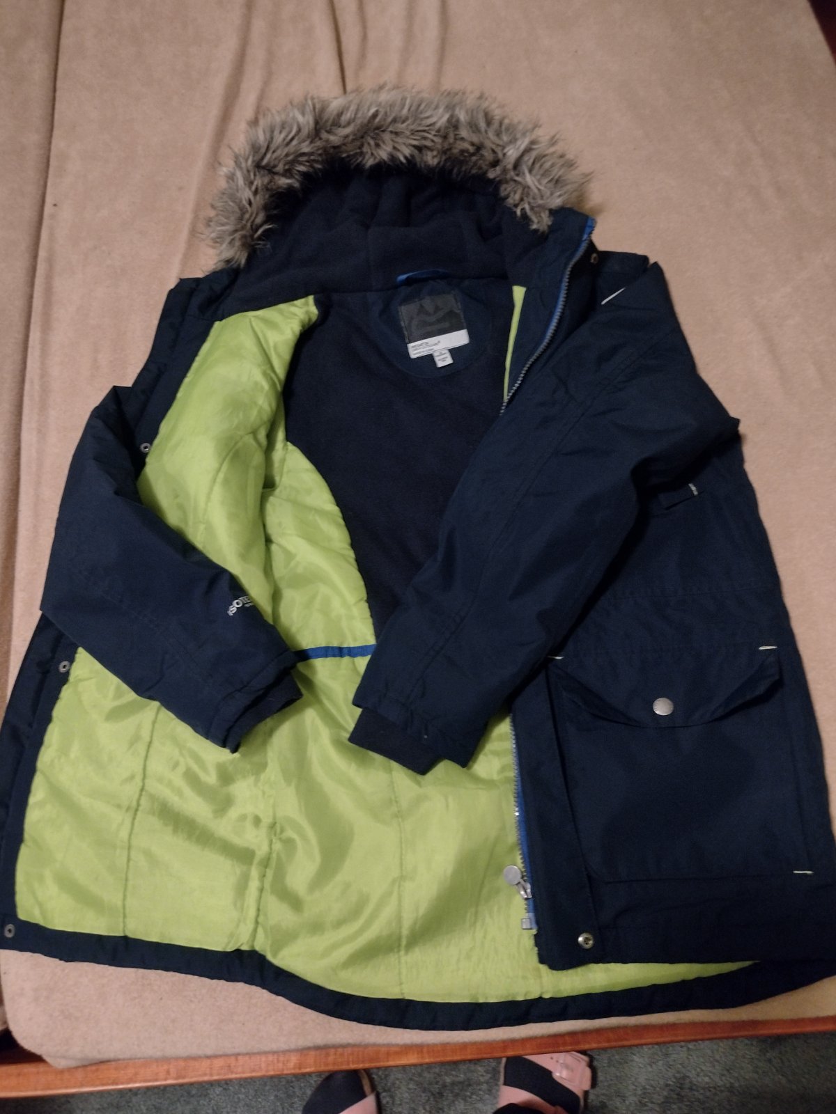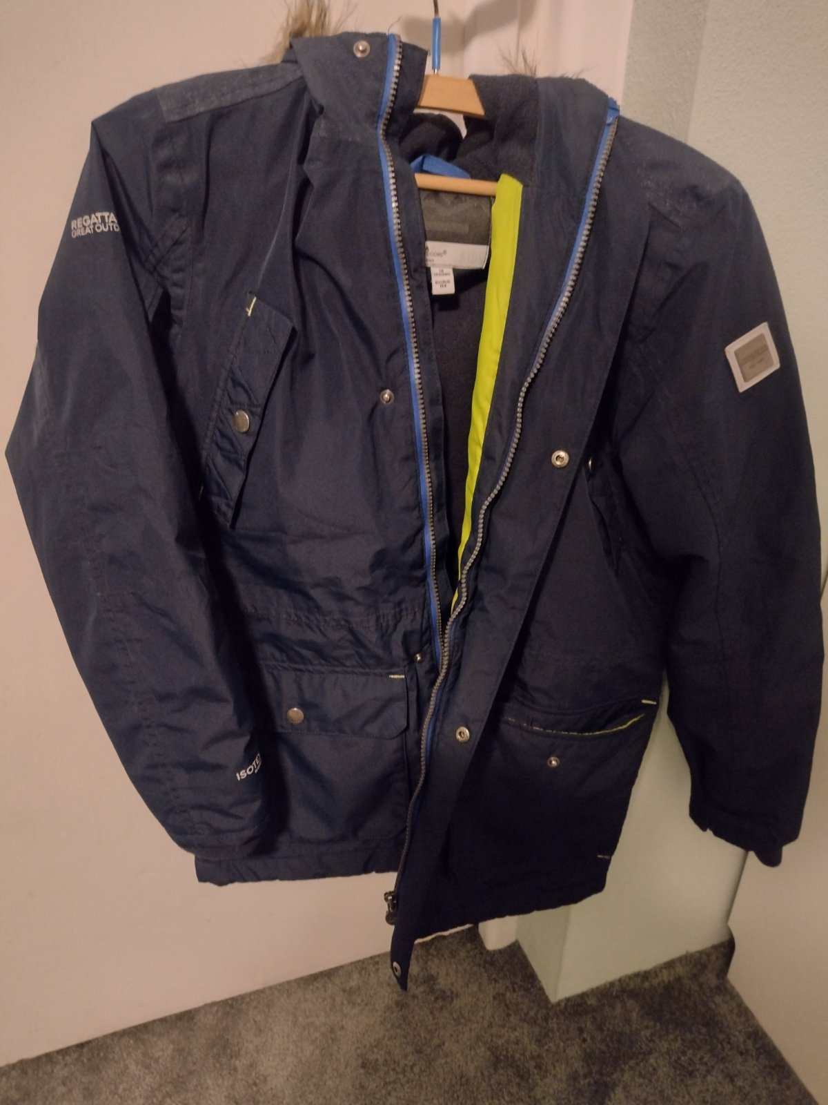 Predám frajerskú, 2krat oblečenú, tmavomodrú bundu na jeseň alebo teplú zimu. Veľkosť 164, v prípade záujmu premeriam. Nosená minimálne, bez poškodenia.Cena 10€, poštovné 4,50(podľa najnovších taríf).