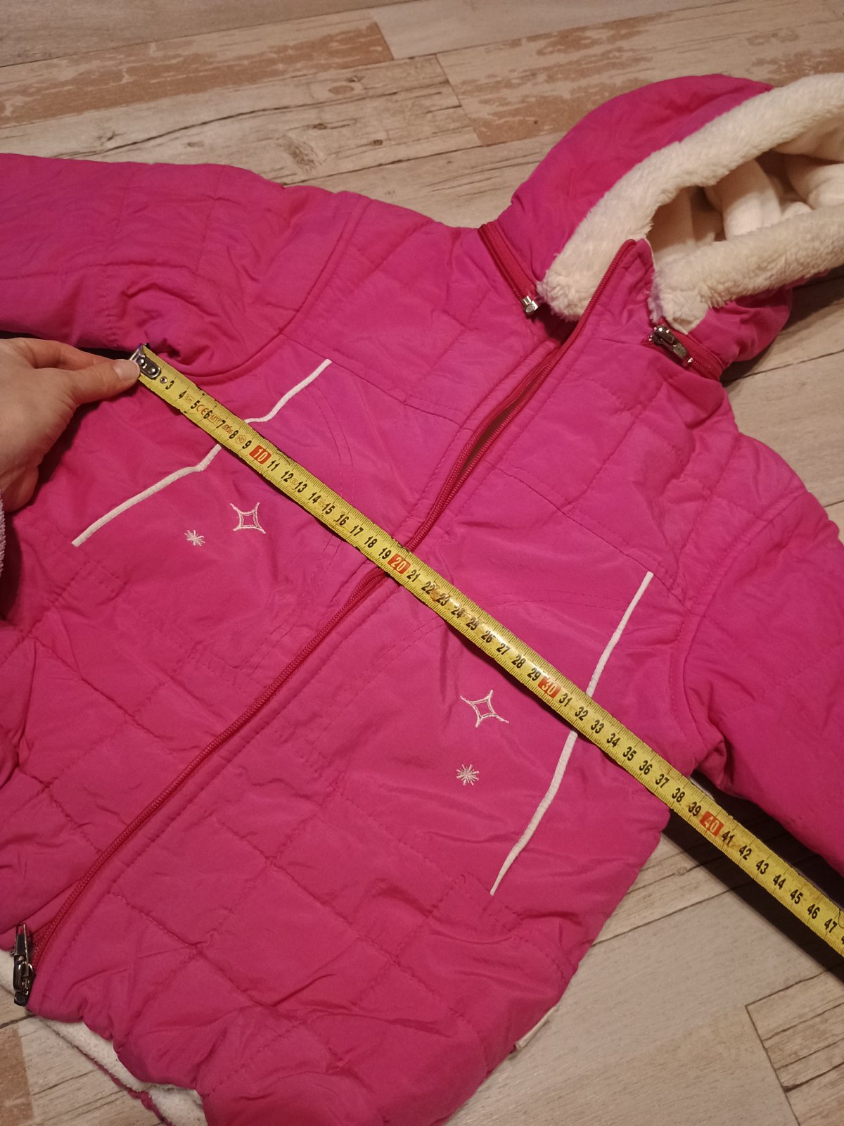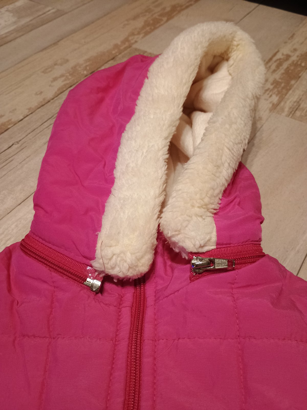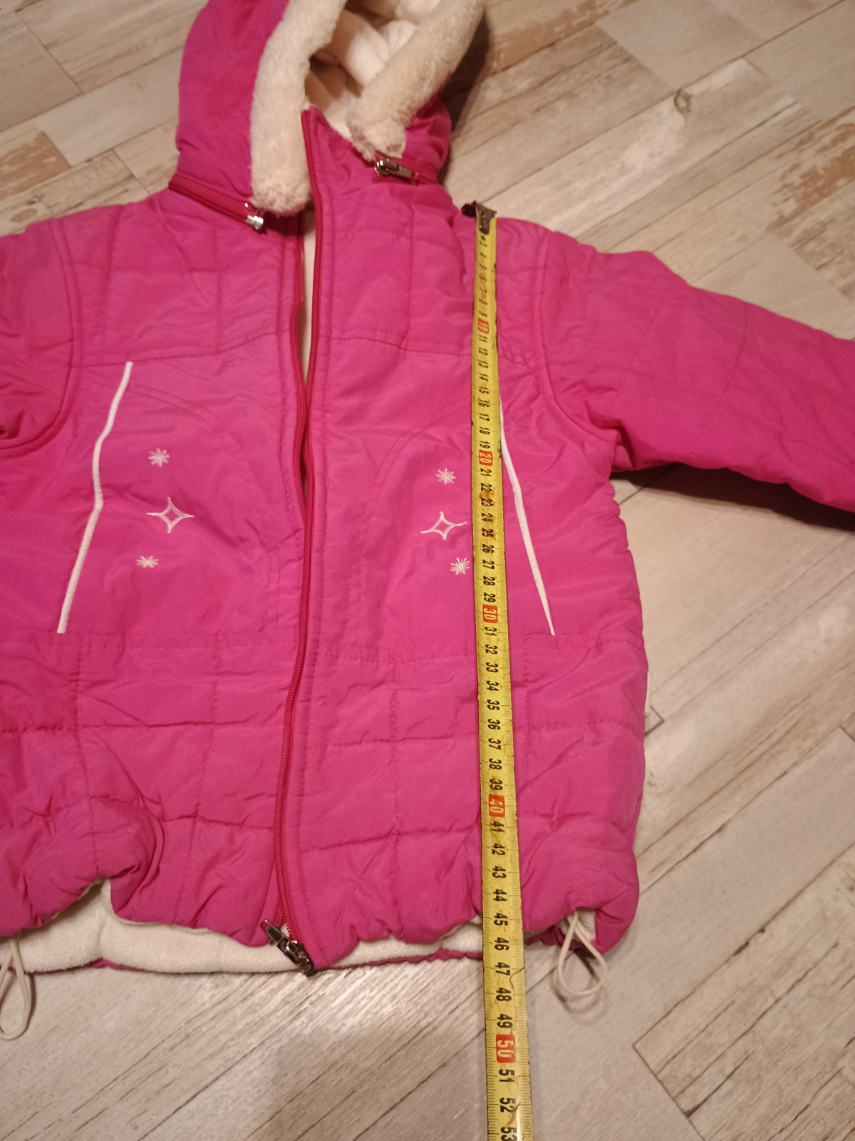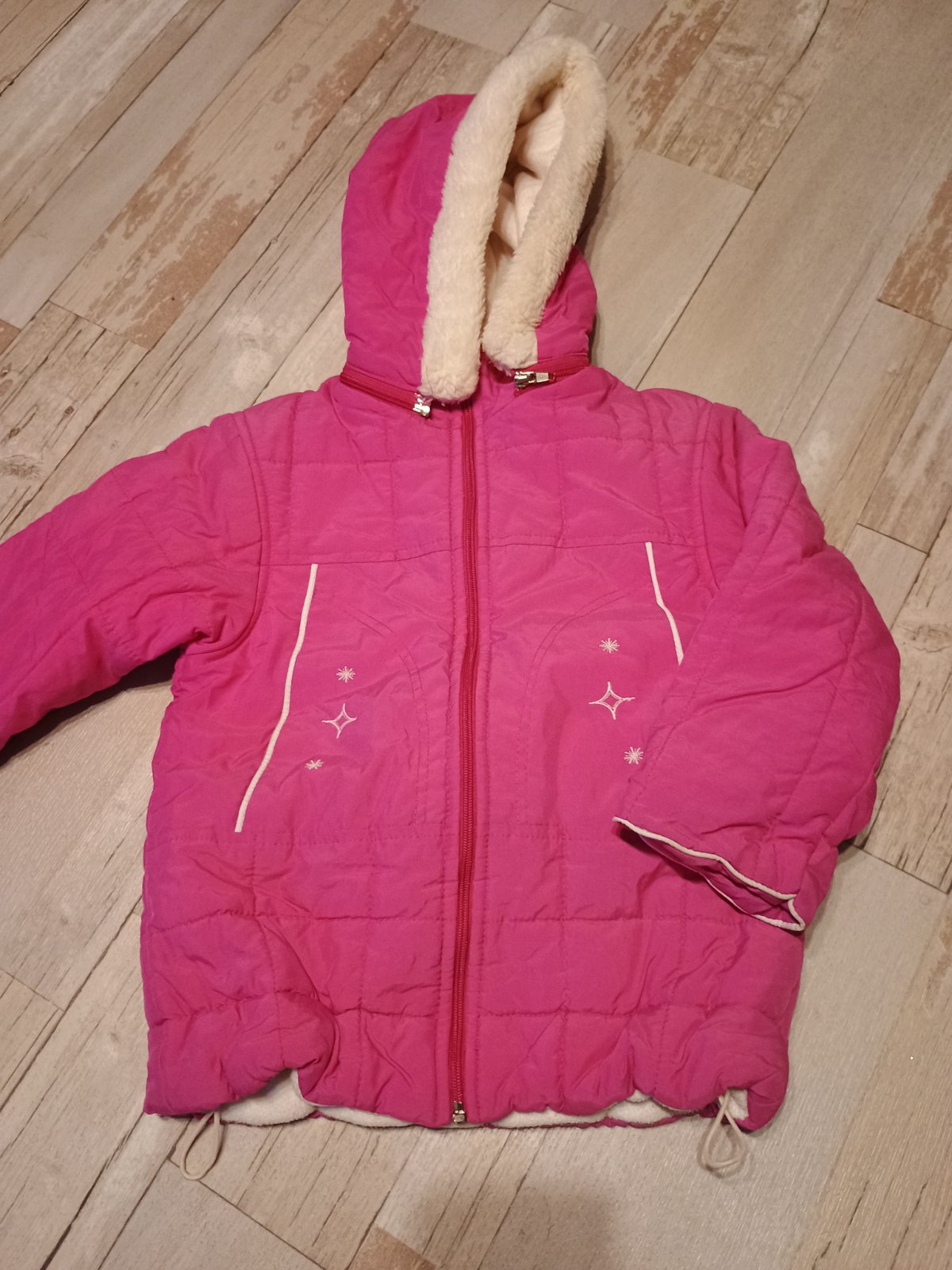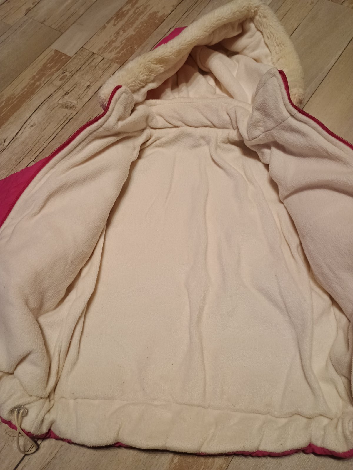 Sýto ružová bundička, kapucňa sa dá odopnúť, stahovanie dole v páse, zvnútra biela, vrecká, veľkosť orientačná kuk rozmery. Nič jej nechýba iba mi stojí v skrini 🤔