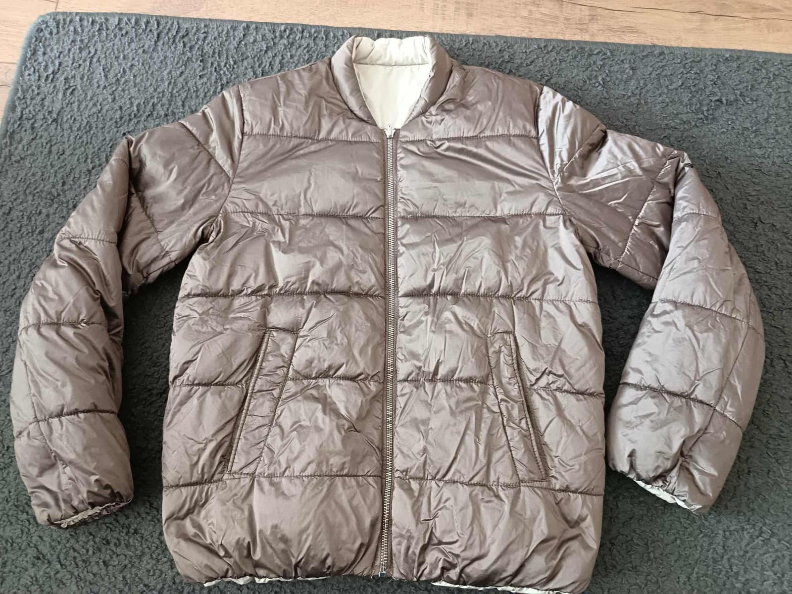 Predám nosenú, nezničenú, obojstannú dievčenskú ale môže byť aj dámska bunda veľkosť S môže byť aj 170. Farba hnedá a béžová, nemá kapucňu ani ju nemala od kúpy.