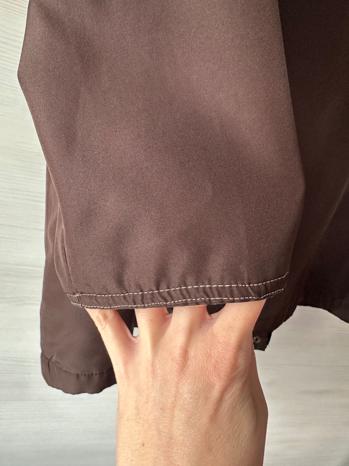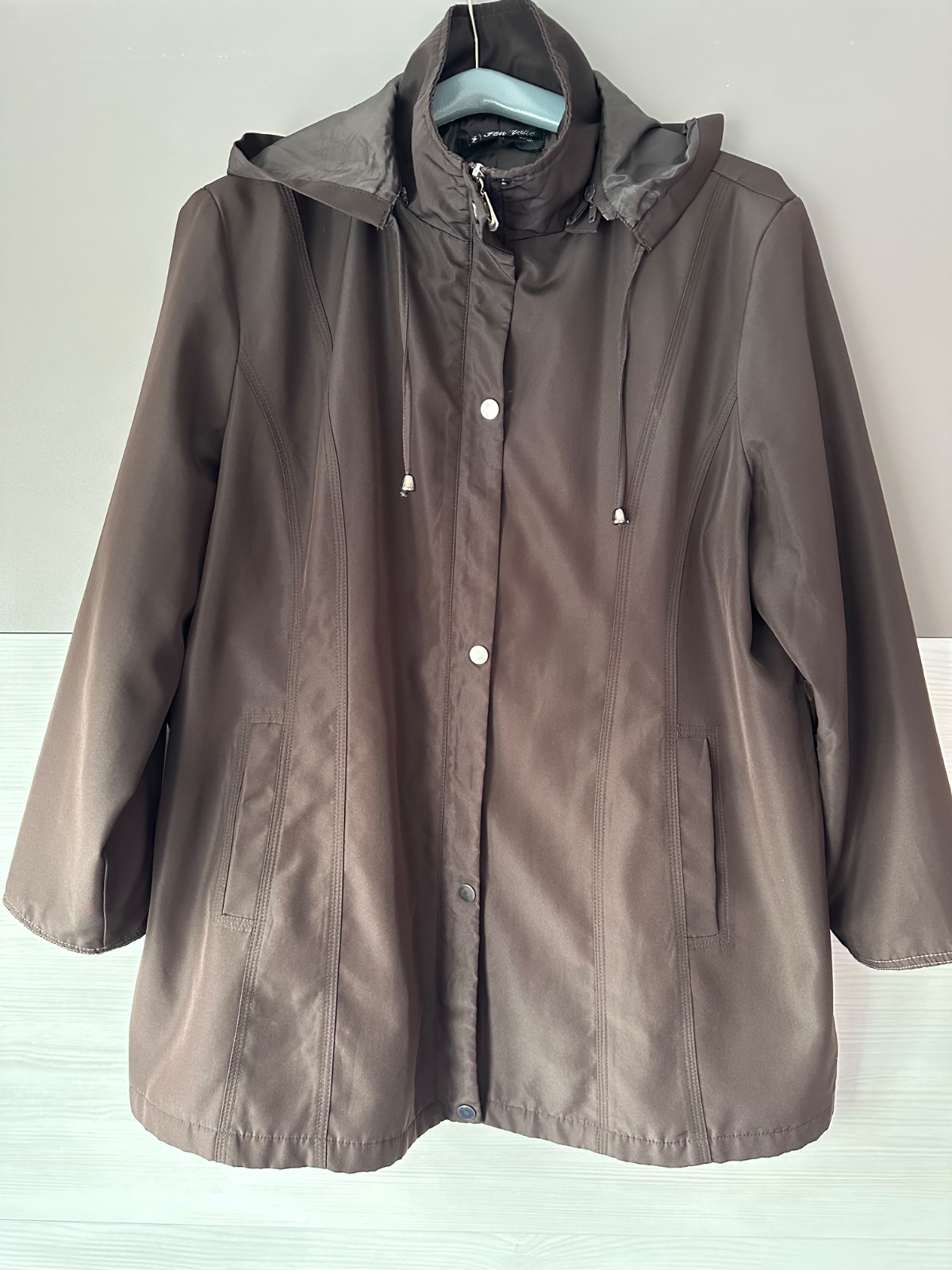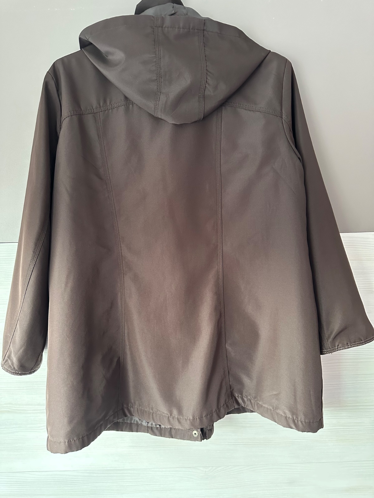 Ponúkam na predaj hnedú jarnú tenkú vetrovku s kapucňou, ktorá sa dá dat dole, veľ. XXL. Rozmery: