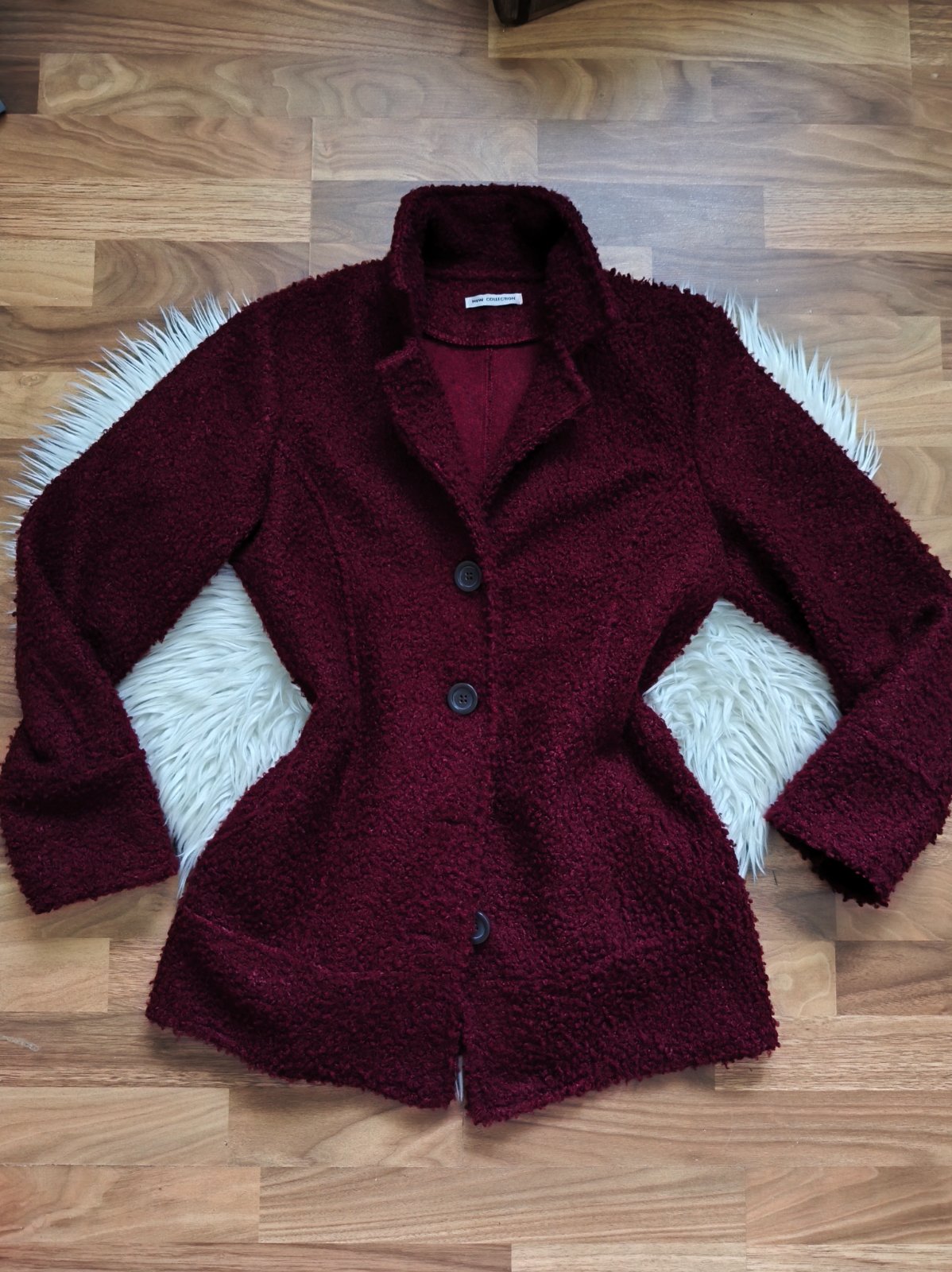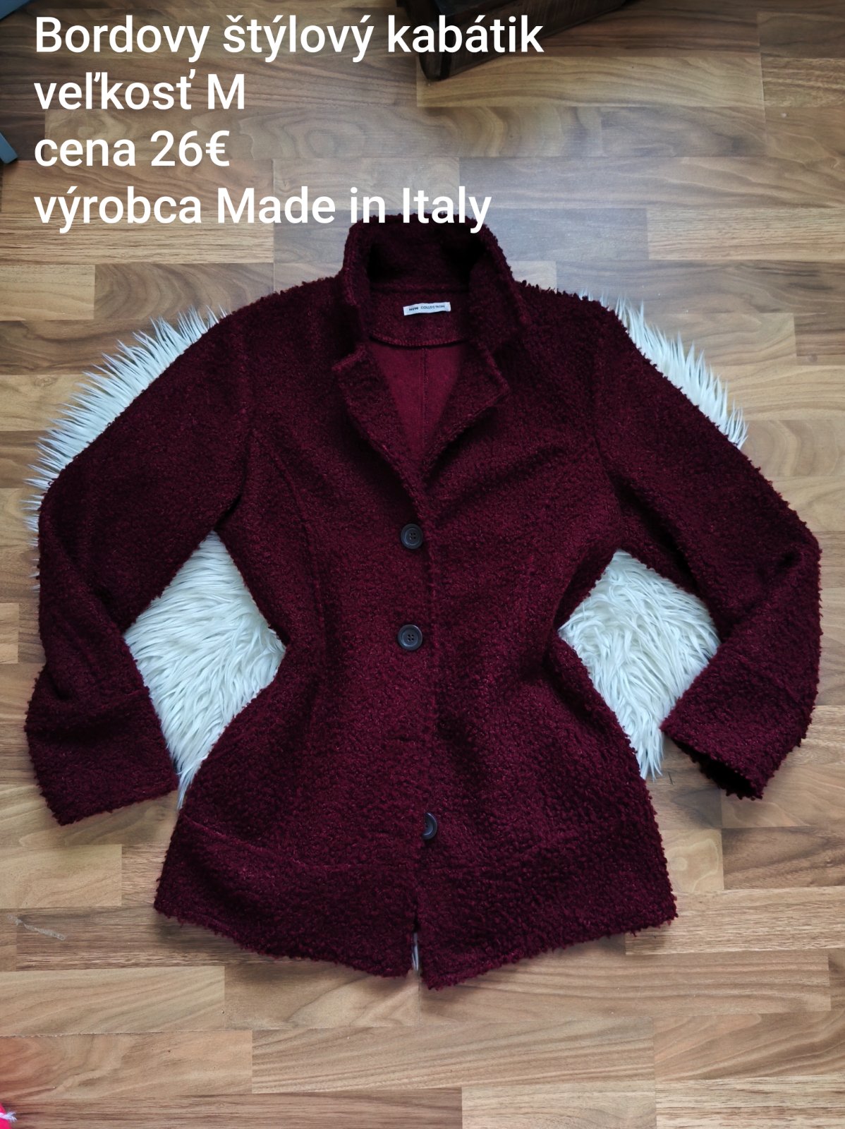 Dámsky štýlový kabátik, krásna bordová farba, odporúčam na teplejsiu zimu.