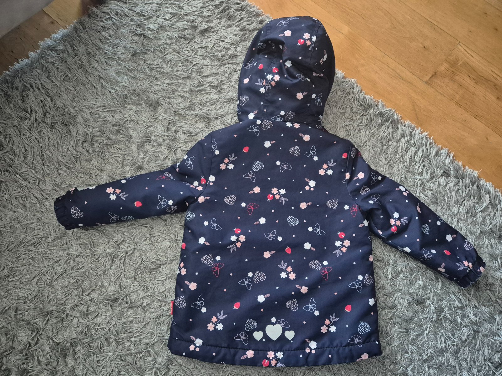Veľmi pekný málo nosený stav, bez poškodenia. Vo vnútri odnímateľná mikina. Celková dĺžka 43cm, dĺžka rukáva od ramena 33,5cm.