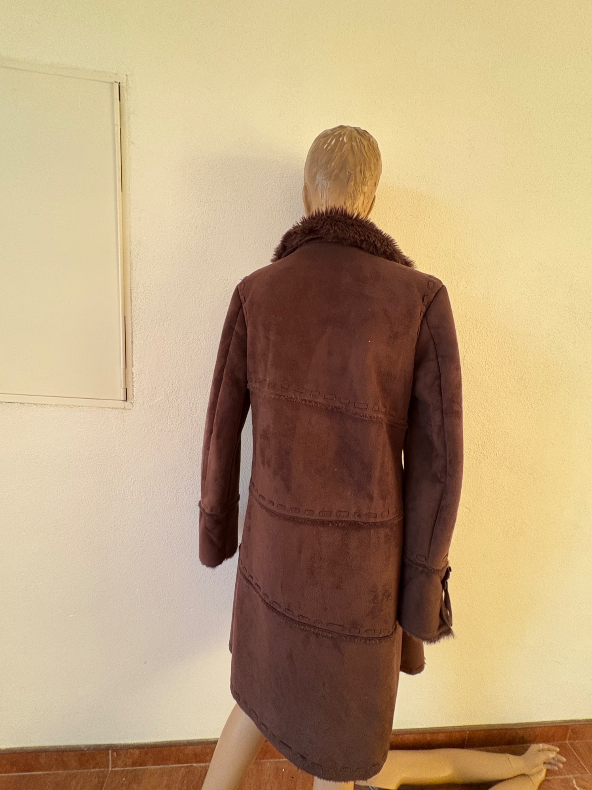 -Tmavo hnedý, čokoladový kabatik s kožušinkou s pekným prepracovaním, dl 100, š 47, vel 36, da sa prať, krasna čoko farba, fotky su dosť zle, je ako nový, krasny