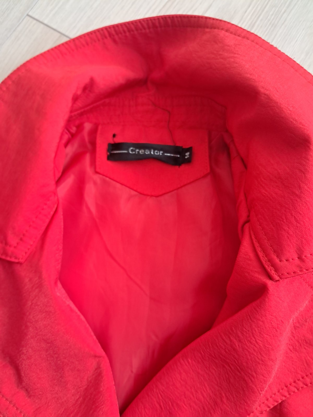 Posuvam kabatik/jarnik mozno raz obleceny dcerou, v krasnej cervenej farbe, na slnku sa jemne trblieta, v tip top stave, ako novy. Velkost pisana 14, sedi podla mna na 146