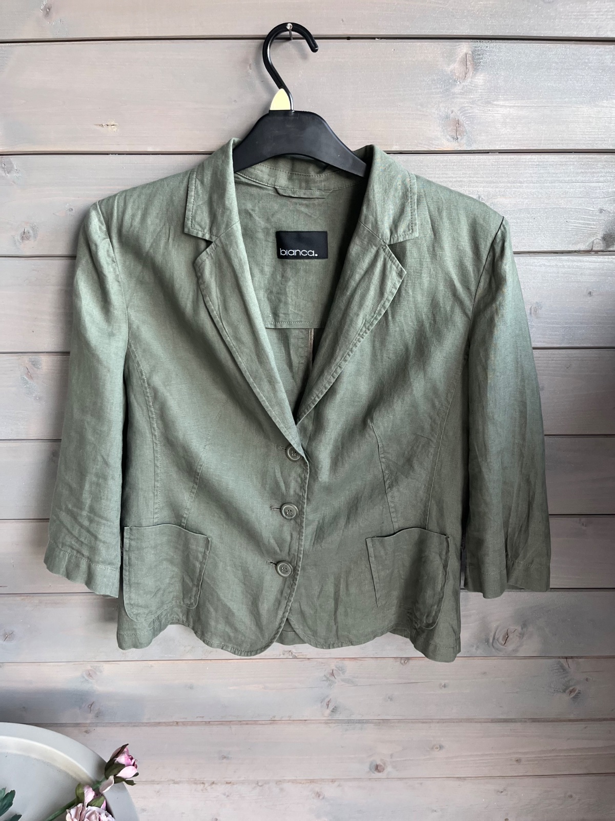 Ľanové sako, mierne vypchavky na ramenach, krasne sedi.