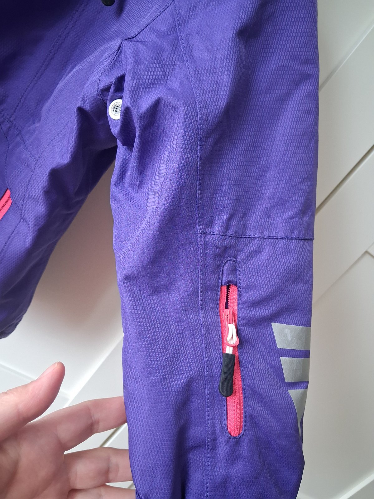 Sťahovacie šnúrky na spodku,zipsovateľné vrecká, vnútorné vrecko, vrecko na skipass na rukáve. Vnútro zateplené výplňou a podšívkou z flísu. Odopínacia kapucka, regulácia suchým zipsom, gumka okolo tváre, reflexné prvky. Zadný diel predĺžený 50cm, rukáv 40cm. Bez poškodenia.