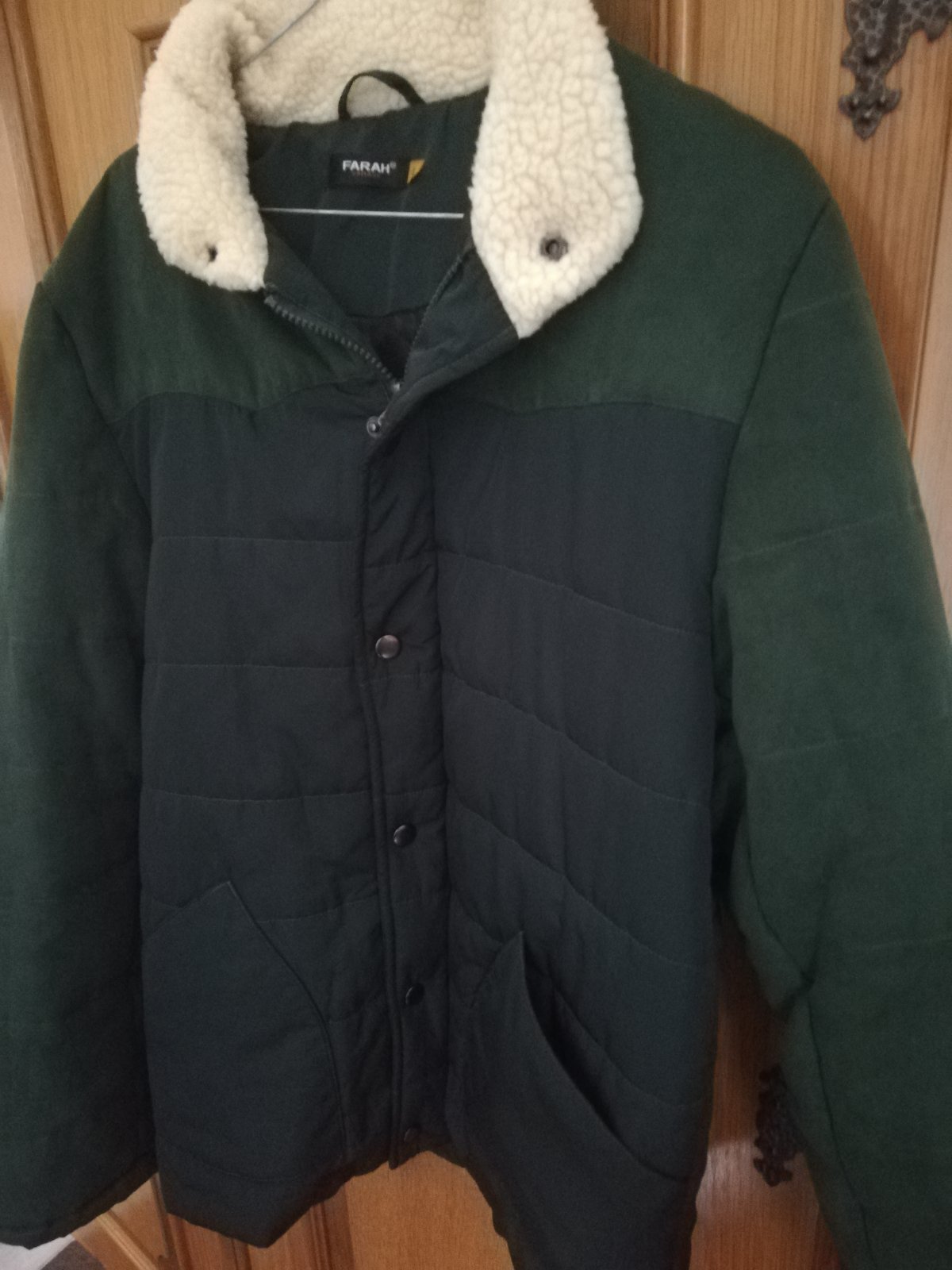 Predám pansku presivanu bundu znacka Farah vintage, je nosena zachovala bez poskodenia farba tmavo zelená velkost M /L šírka bundy 52cm dĺžka zadná strana bez goliera 70cm