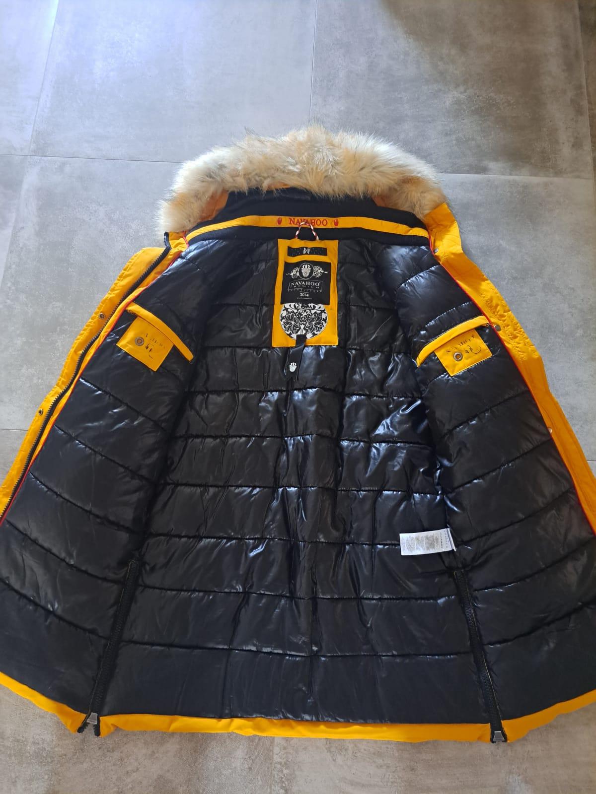Veľmi teplá zimná bunda, TOP stav, vrecká na zips aj bez zipsov, dva zipsy na bokoch na spodnej časti bundy, vnútorné vrecká na mobil, slúchadlá, kožušinka z papucne sa dá dať dolu. Nová stála 160,-