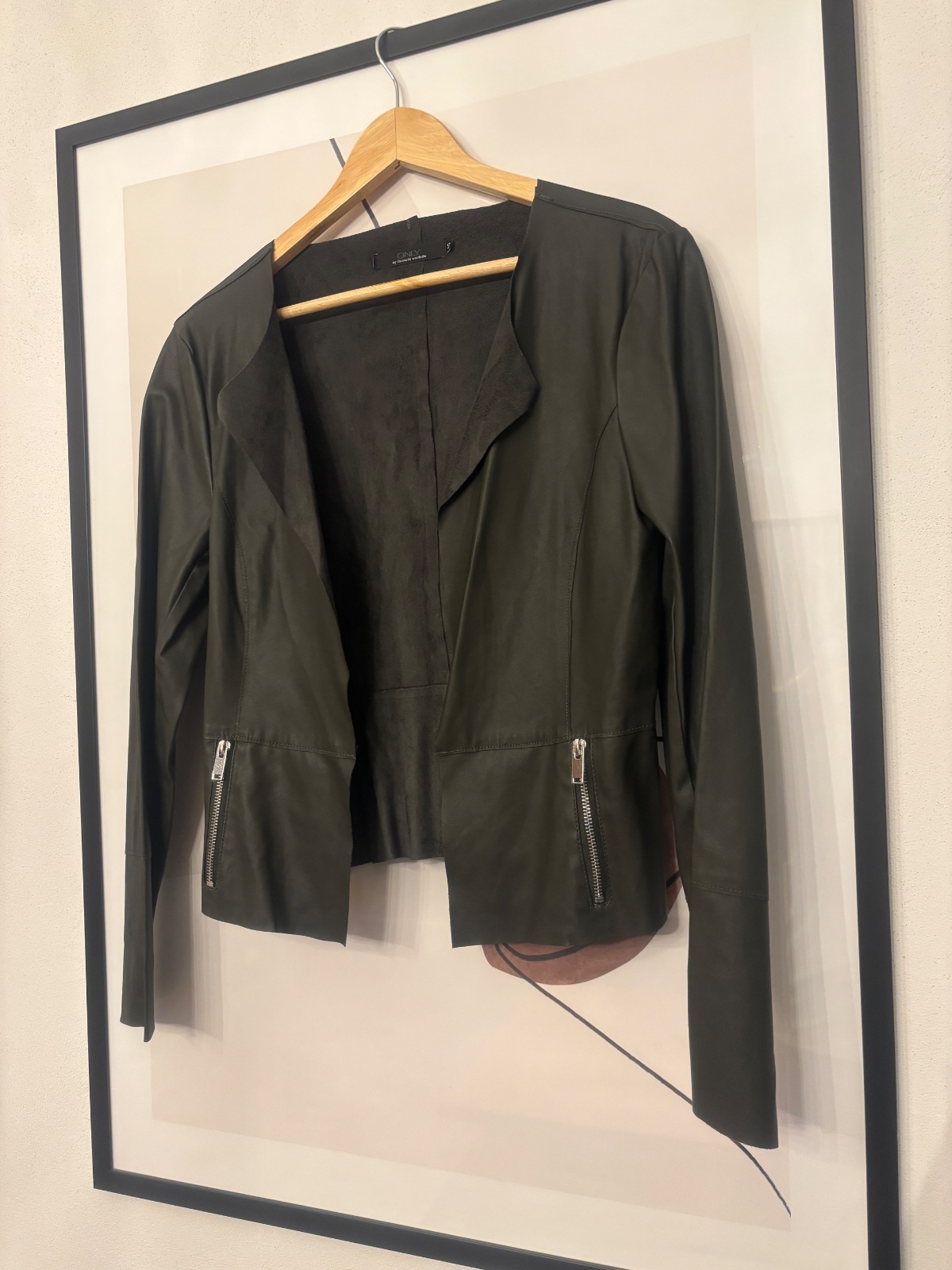 #damska_bunda ONLY #velkost_l khaki Vhodná aj k šatám či nohaviciam športová elegancia z vnútra brúsená koža z lícach ako koženka