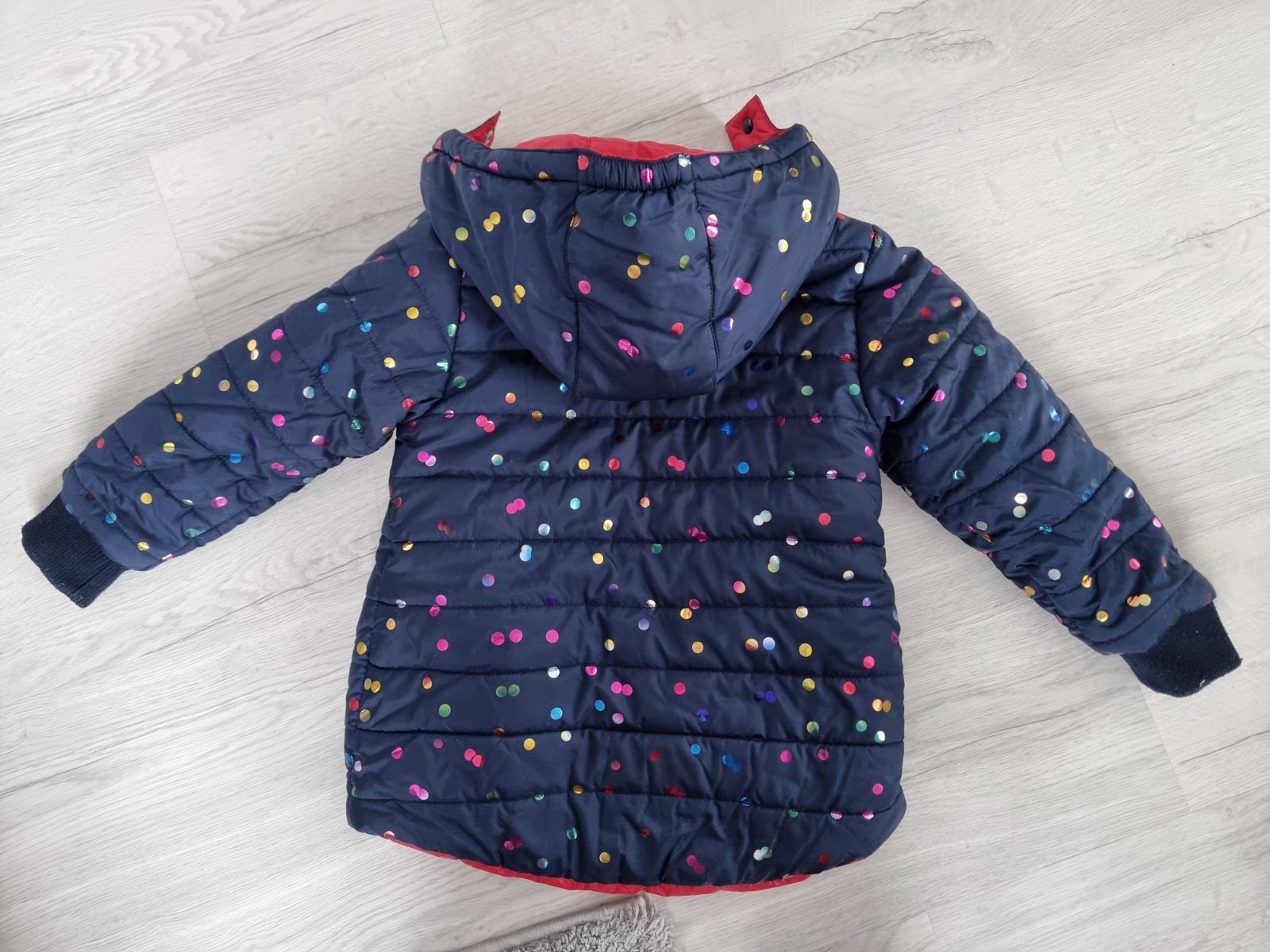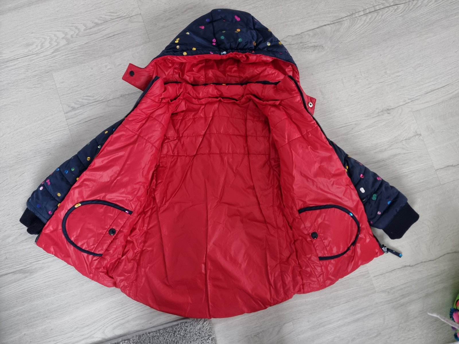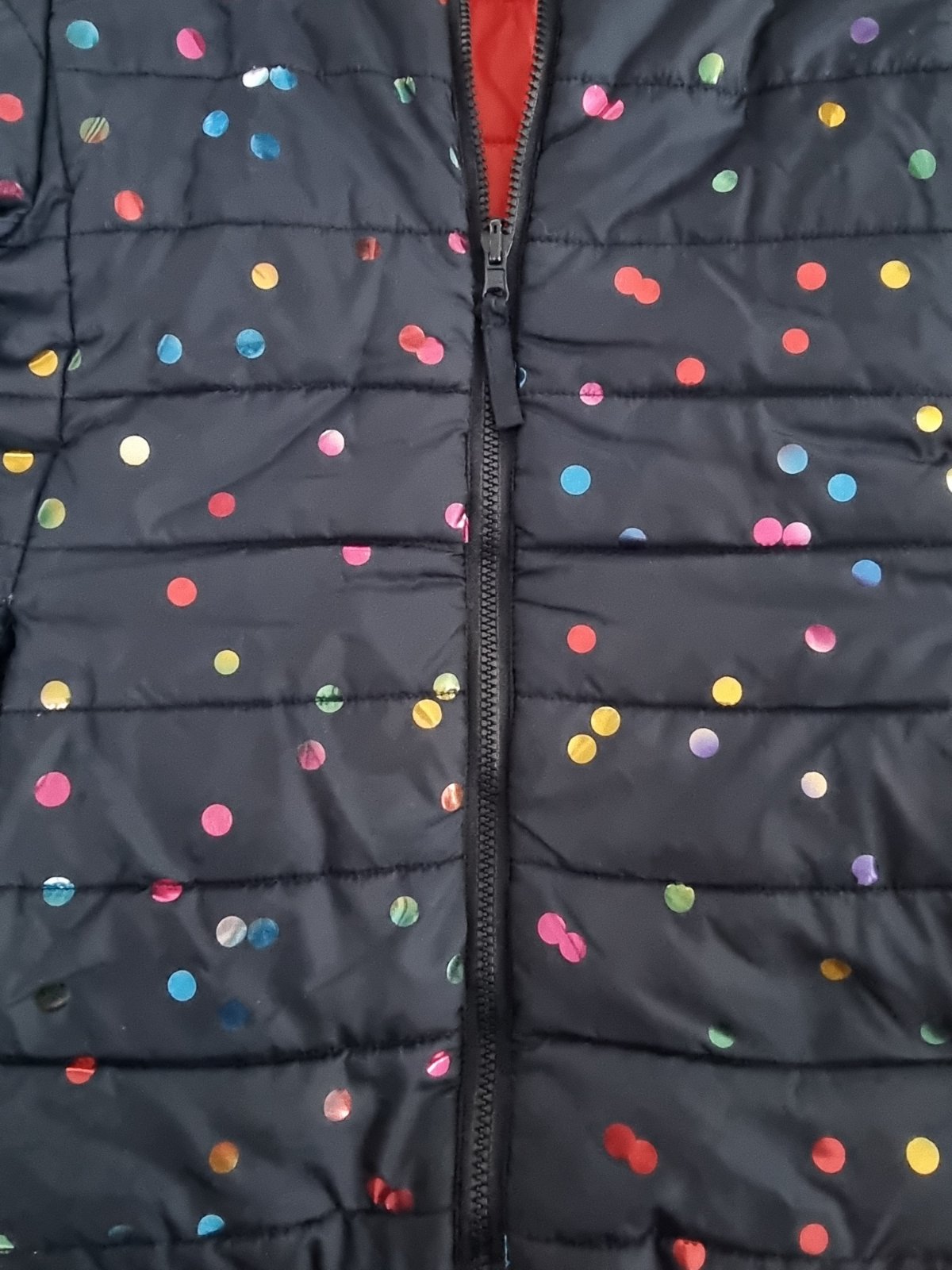 Predám krásnu zimnú bundu zn. Boboli, je obojstranná - na jednej strane tmavomodrá s lesklými guľôčkami a na druhej ružová. Nosená na striedačku s inými, v peknom stave bez poškodení