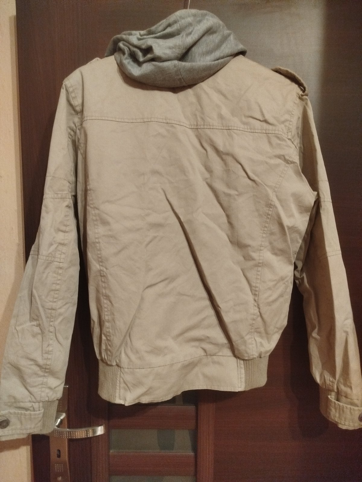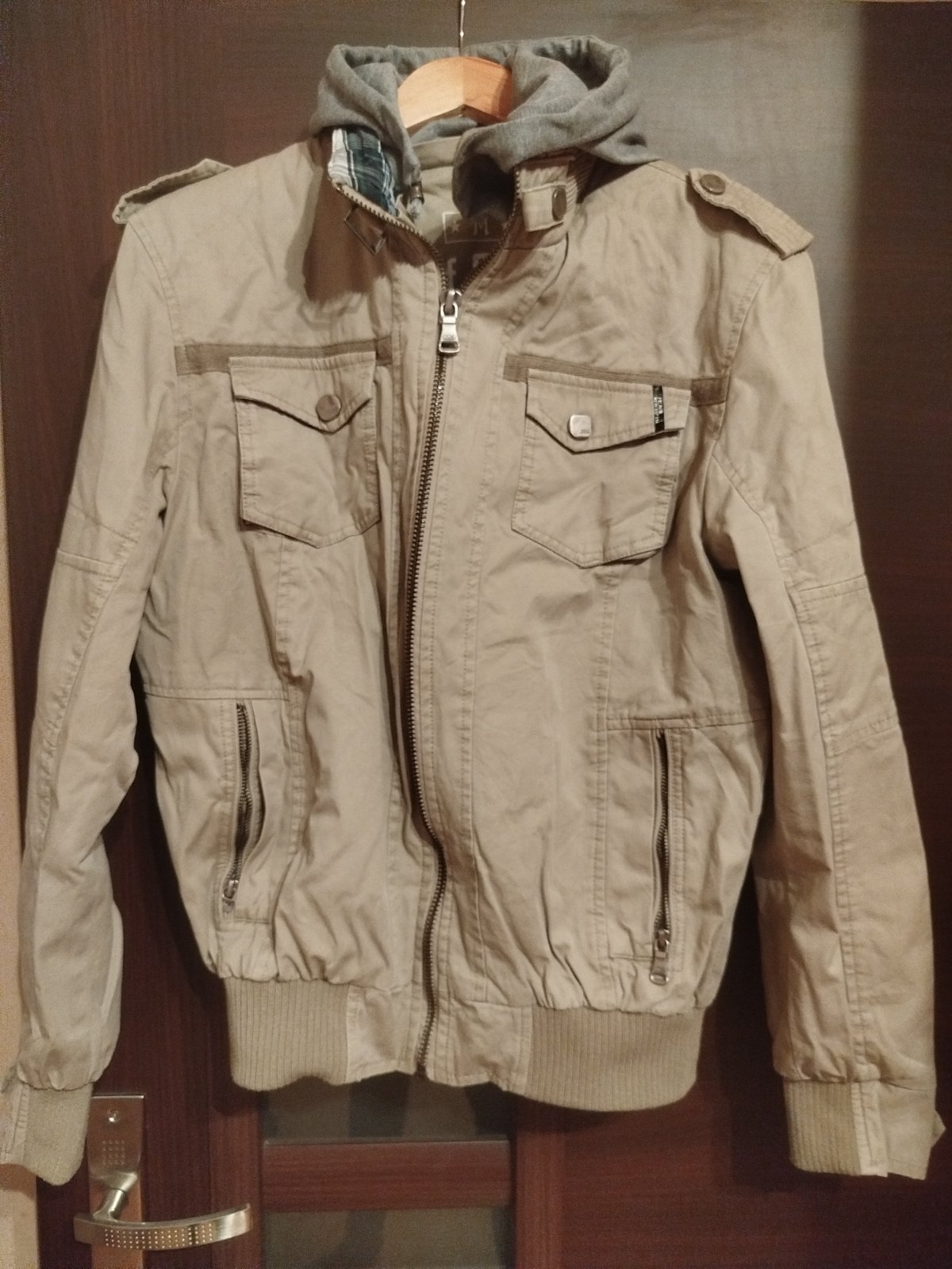 Pekná prechodná bunda, na úplete miestami minižmolky, inak v super stave! Kapucňa sa dá odopnúť.