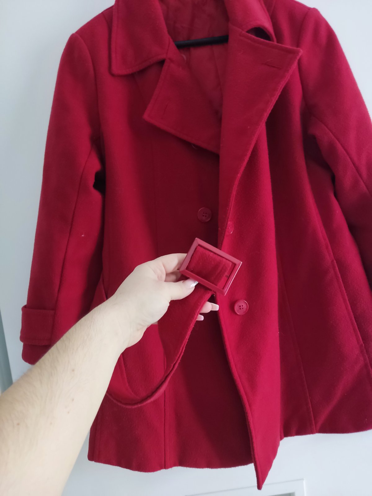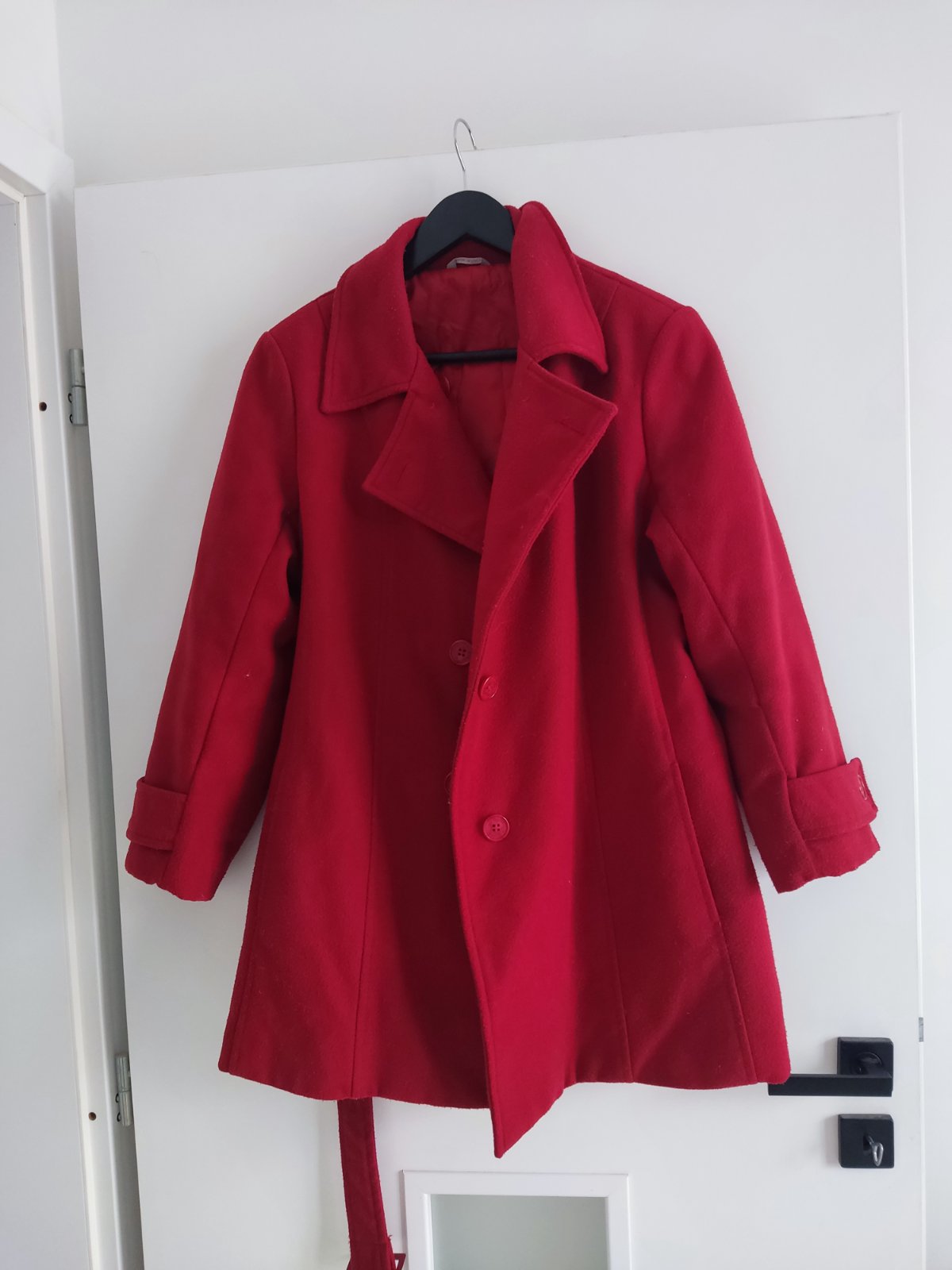 Predám 1x oblečený kabát vhodný na jeseň/zimu. Veľkosť 48. Farba červeno-bordova.