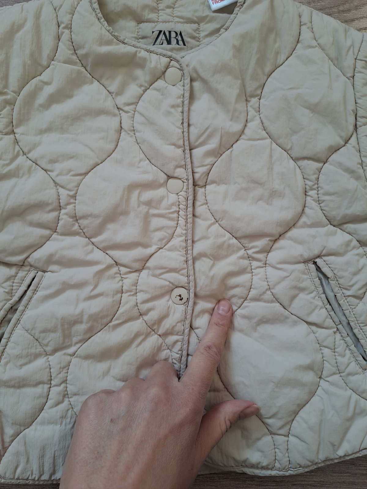 Denimova bunda ZARA krémovej farby veľkosť udáva ako L ,ale reálne sedí na S/M, v perfektnom stave, používaná cca 3x . Bez poškodení. Cena 8 eur