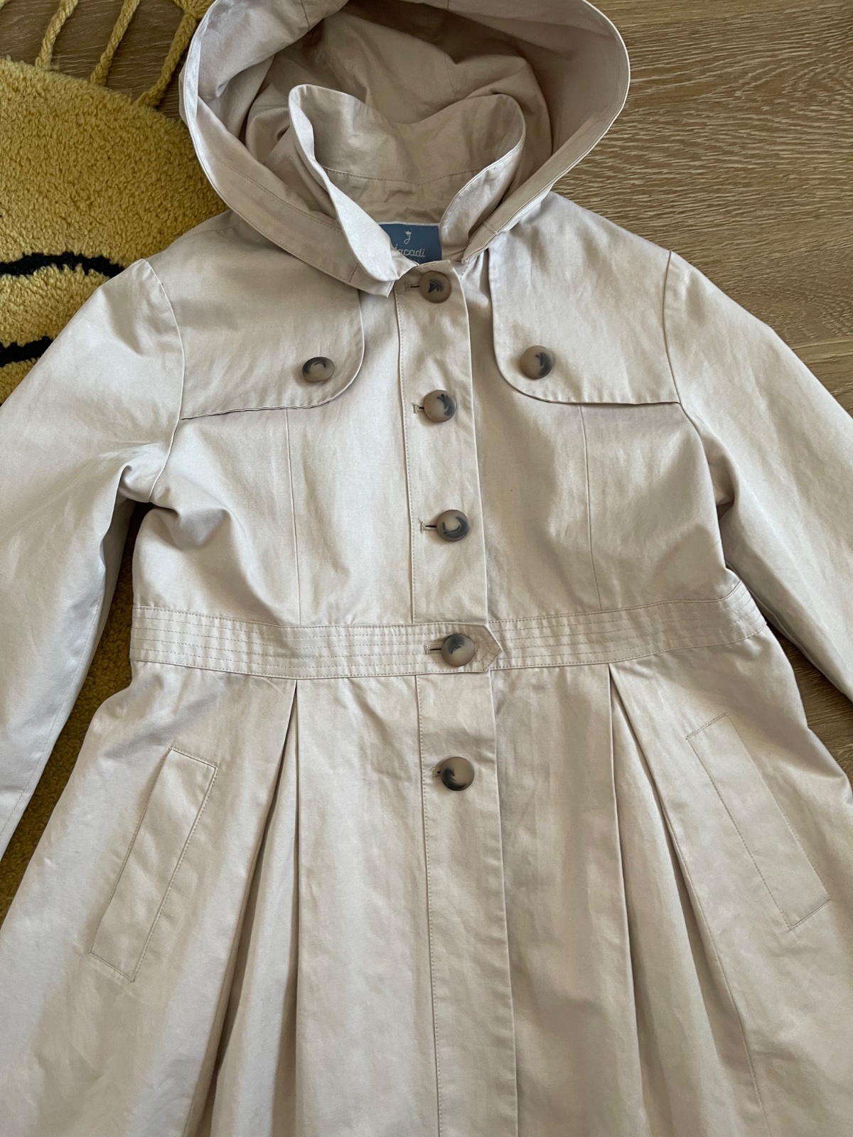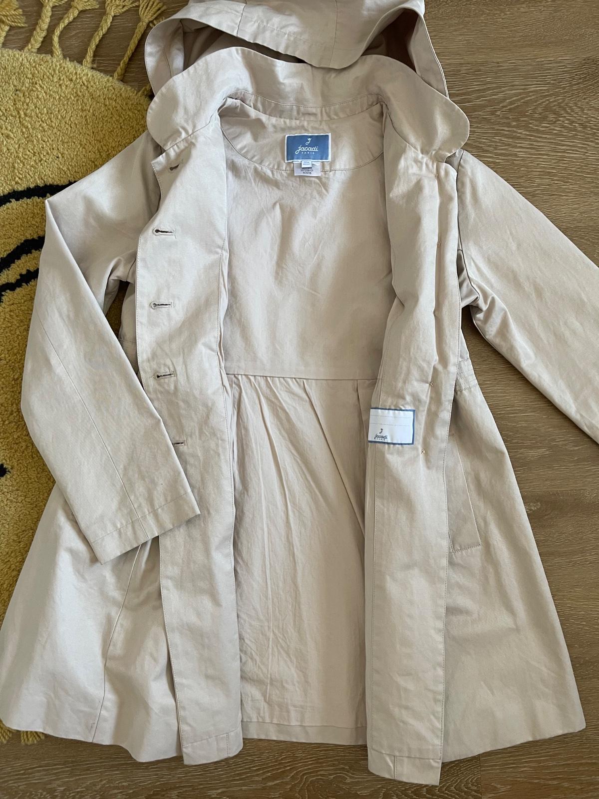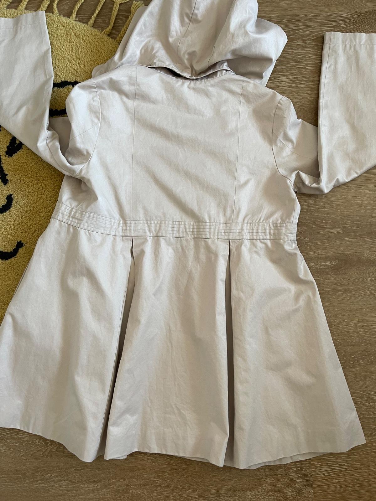 Kvalitný trenčkot, vyrobený s dôrazom na detaily. Má odnímateľnú kapucňu a 2 funkčné vrecká. Ako nový.