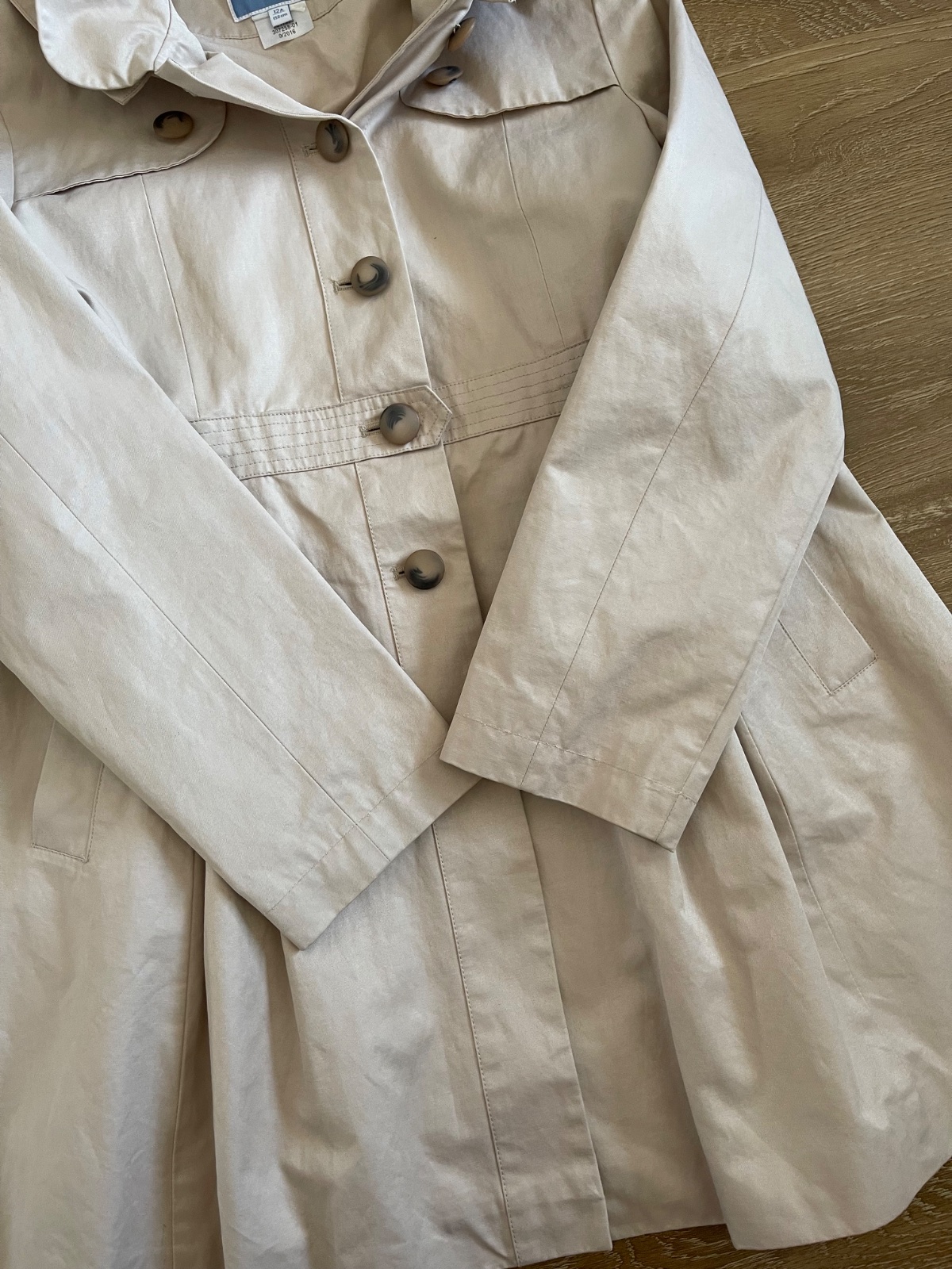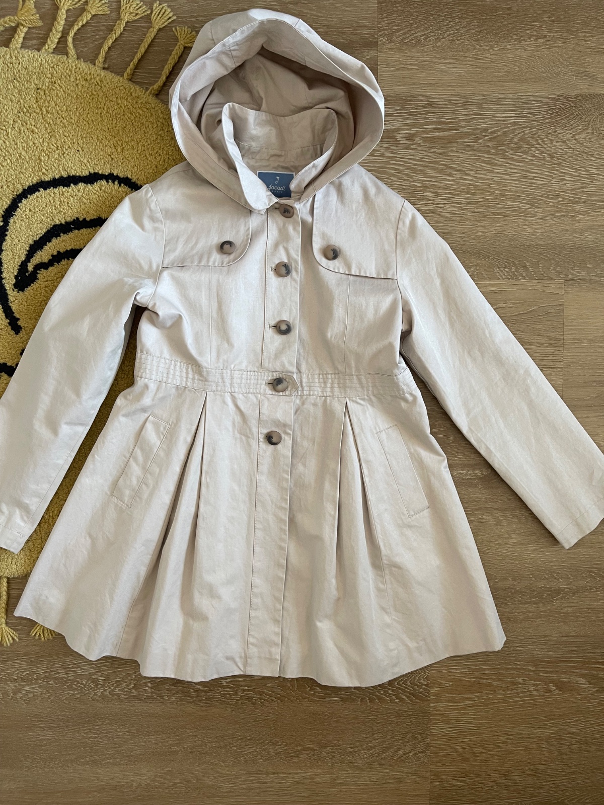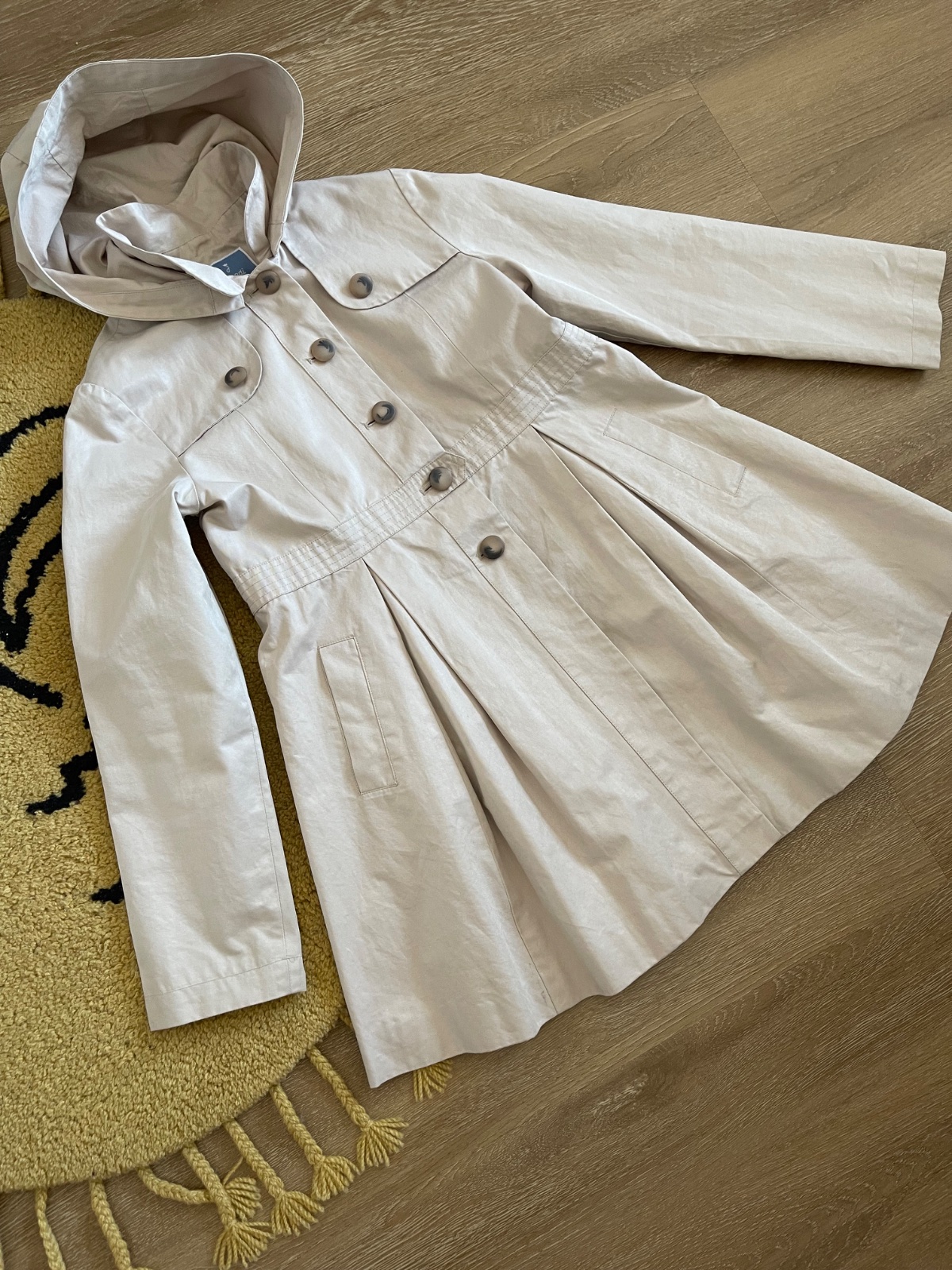 Kvalitný trenčkot, vyrobený s dôrazom na detaily. Má odnímateľnú kapucňu a 2 funkčné vrecká. Ako nový.
