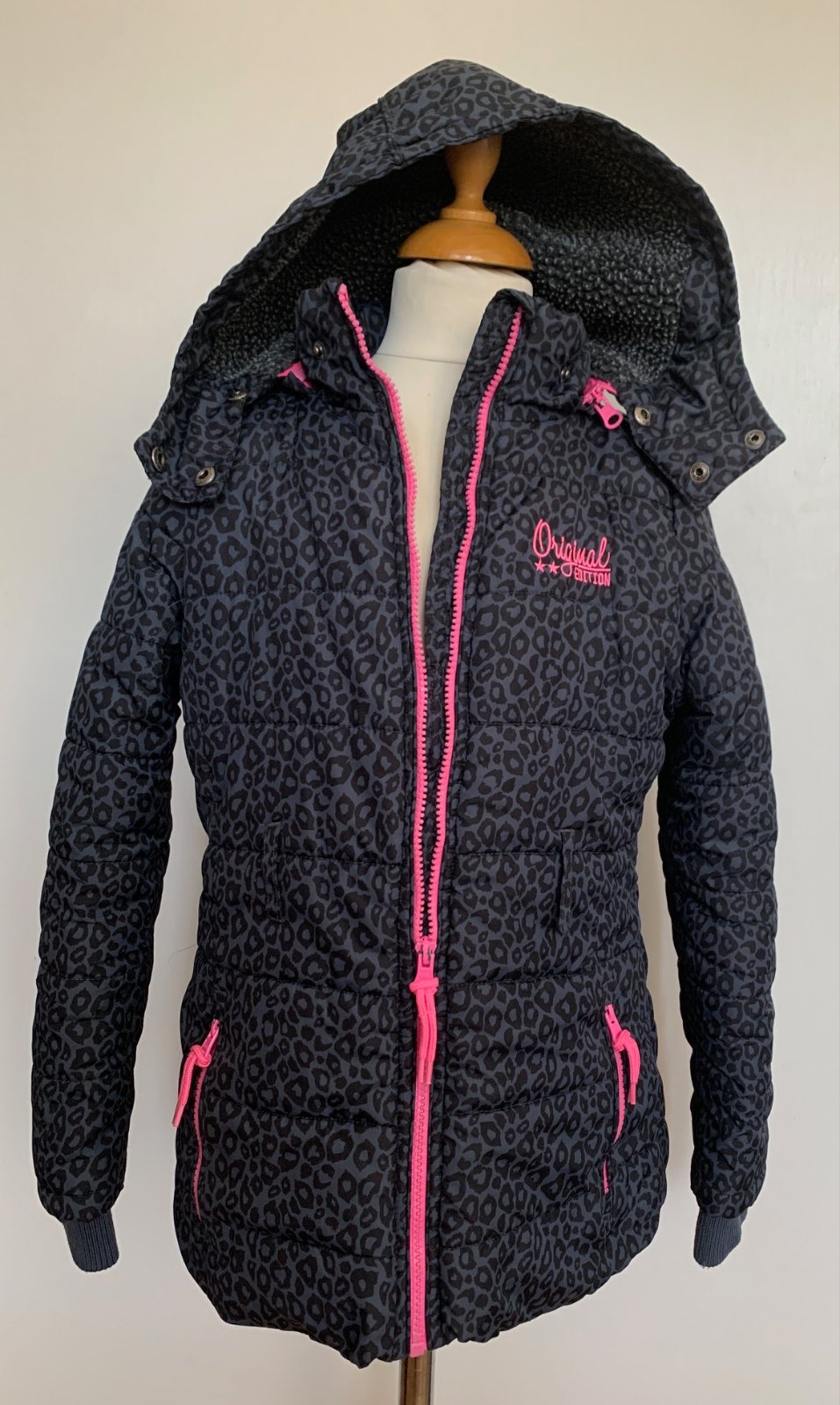 Nosená vetrovka je v peknom stave bez poškodenia. Kapucňa už má žmolky a chýba opasok.u