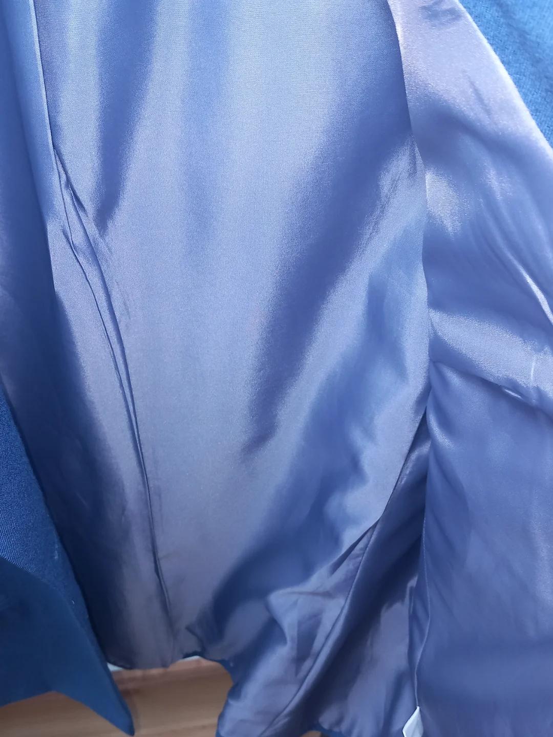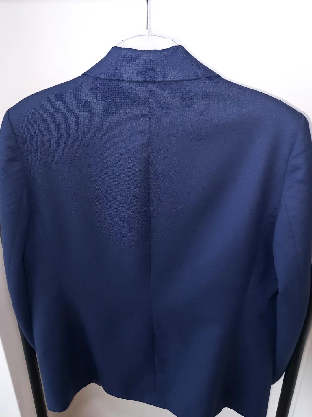 Sako má elegantný až mierne formálny rovný strih. Nechýbajú dve funkčné vrecká vpredu a jedno menšie na hrudi. Plecia sú spevnené minimálnymi vypchávkami, vďaka ktorým výborne drží tvar. Zapína sa na ozdobné gombíky, rovnaké nájdete aj na rukávoch. Je podšité po celej dĺžke.