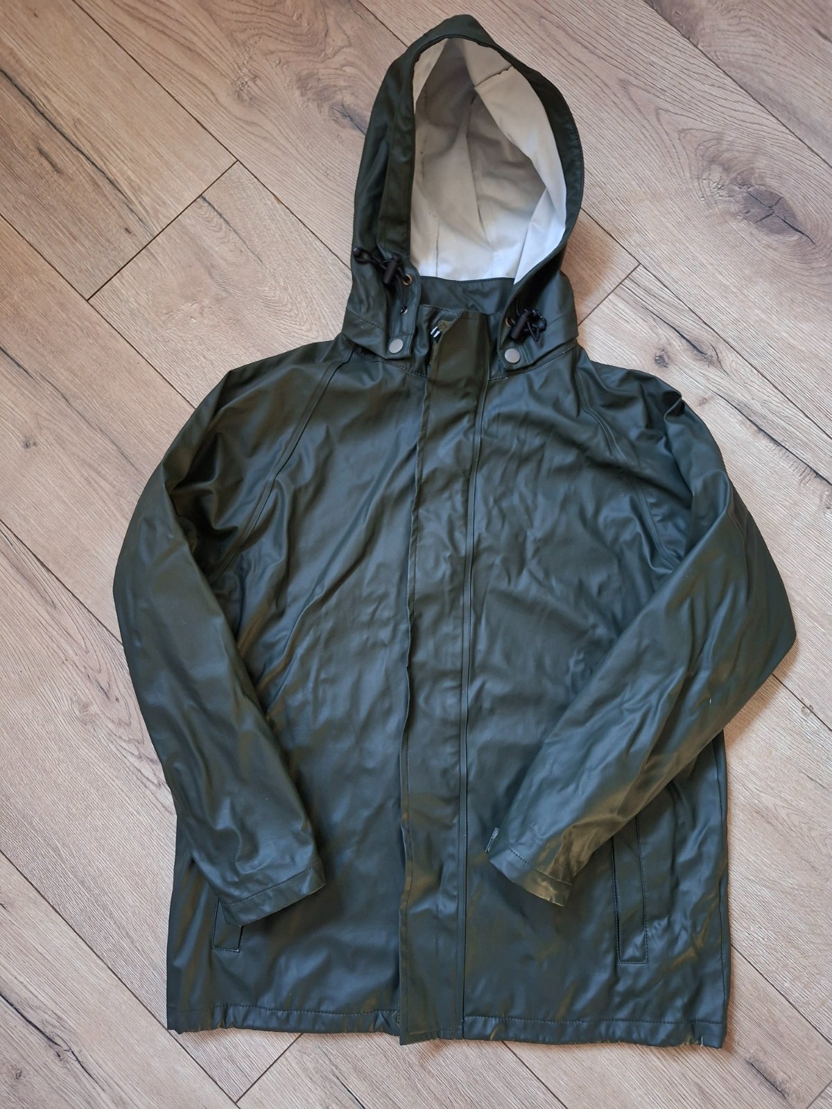 Dlhý kabátik, lesklý, nosený, žiadne diery, akurát vje šnúrka trošku roztrapkana no to nevidno... Píše na 152cm,takže veľkostne skôr menší - 146 Kapucňa na pevno. TREBA PREMERAŤ! Dĺžka - 89cm Dlzka...