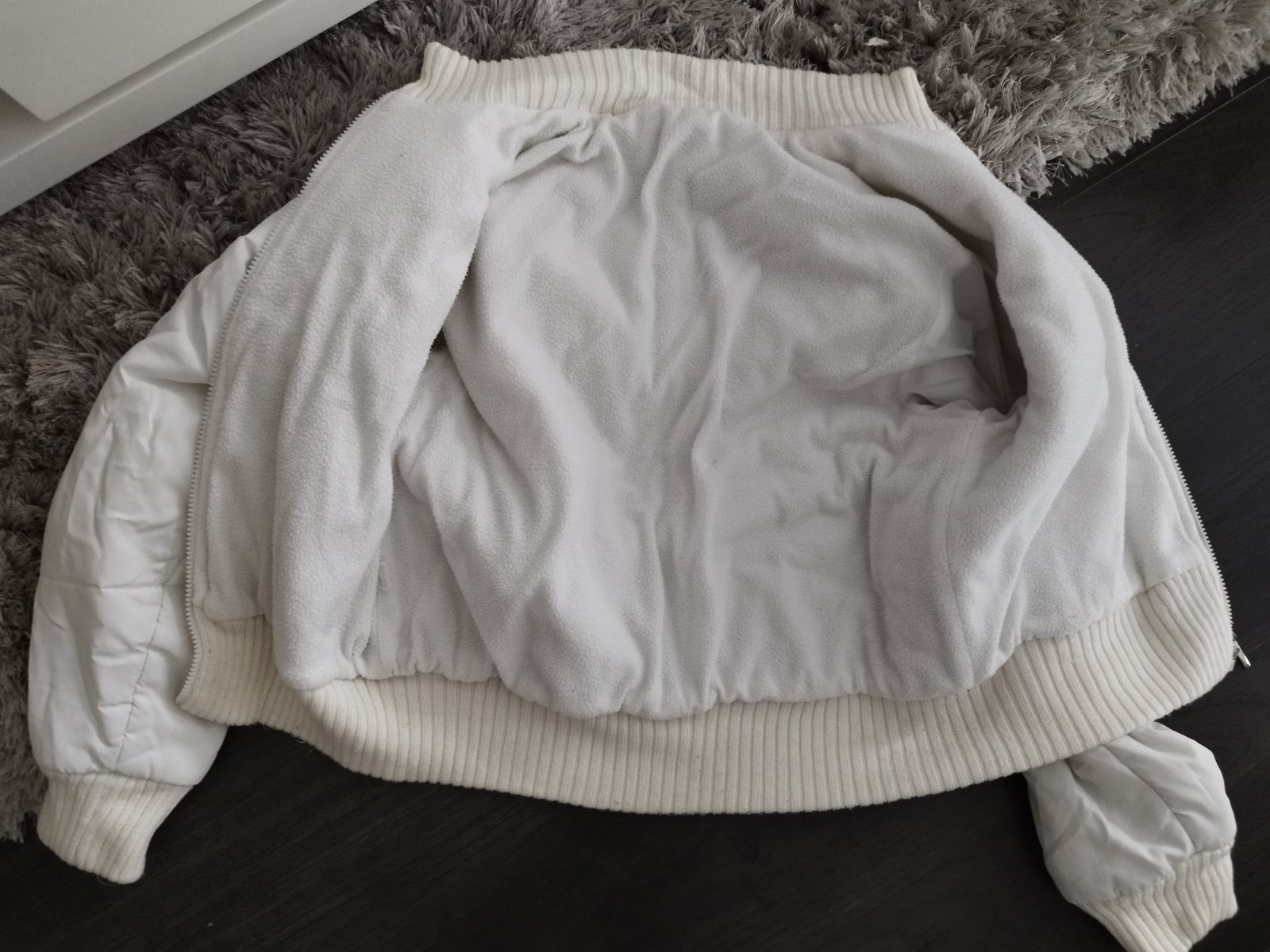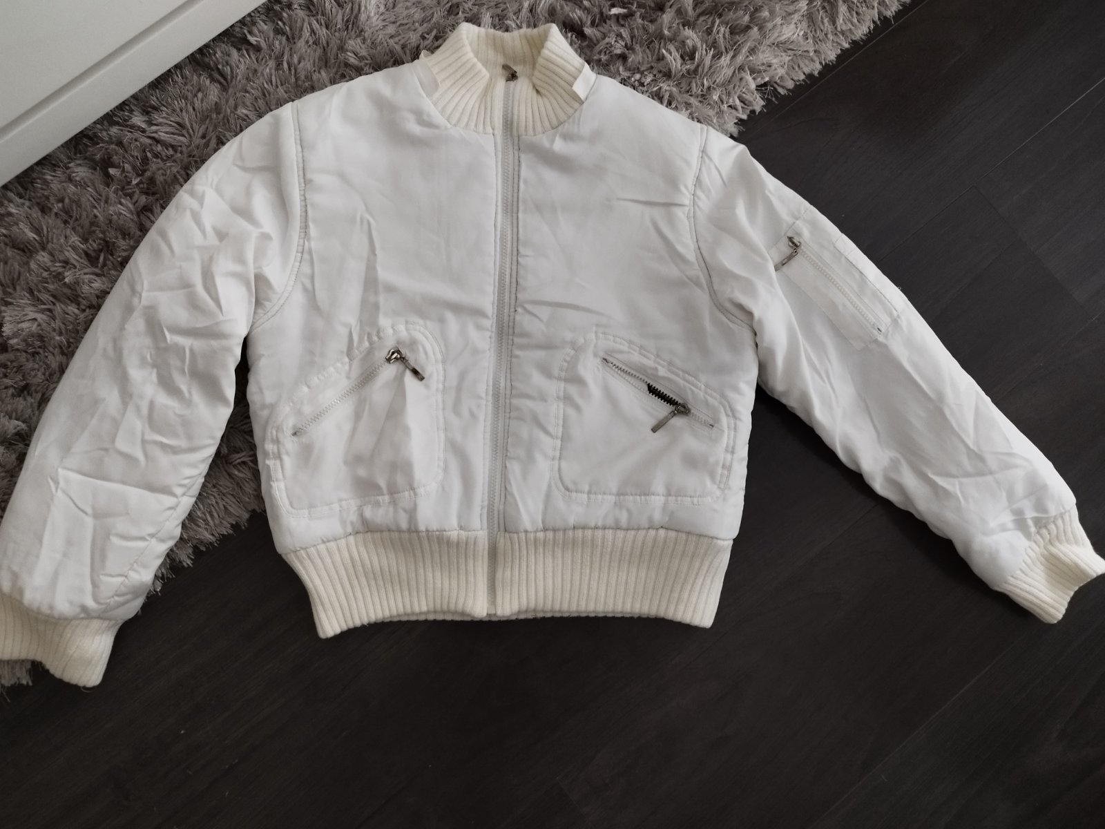 Biela nosená vetrovka, stále pekná, bez známok nosenia z vonkajšej strany. Teplá, vhodná do zimy. Veľ.38/M