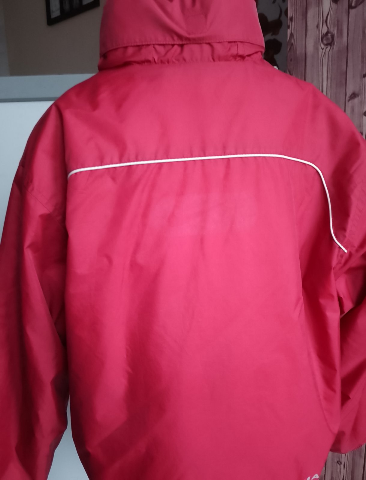 Pekný nosený stav. Veľkosť 122-128. Na miernejšiu zimu, nie do veľkých mrazov. Kapucňa zrolovaná v golieri.