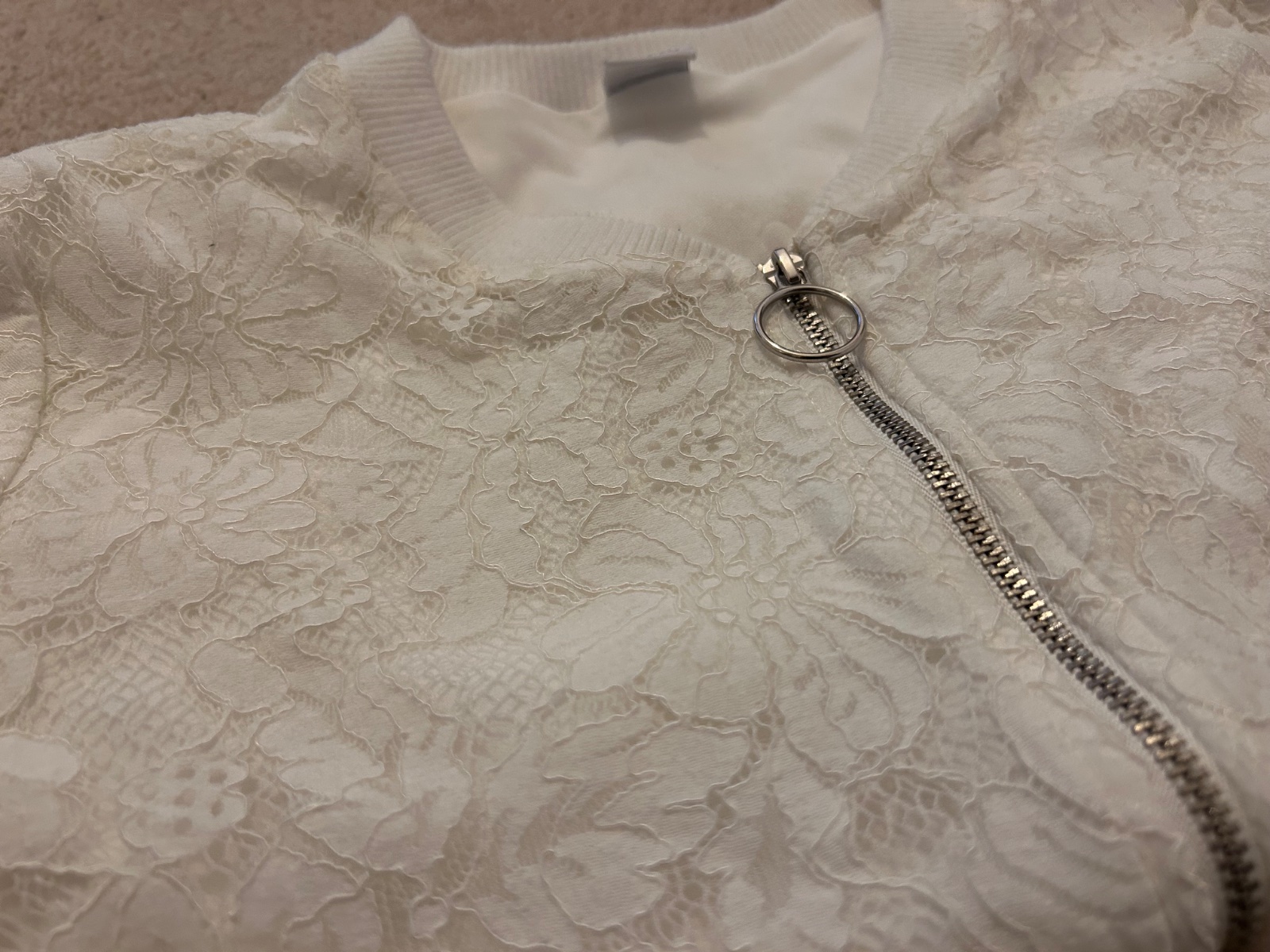 Predam cipkovu bundu zn Lindex. Velkost na 12-14 rokov. Miery su na foto. Chvilu nosena. Na rukave bodka (foto). Na predaj aj nohavice z rovnakej serie.